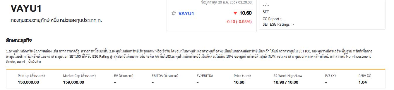 กองทุน VAYU1 หน่วยลงทุนประเภท ก. มีจำนวน 15,000 ล้านหน่วย มูลค่าระดมทุน 150,000 ล้านบาท