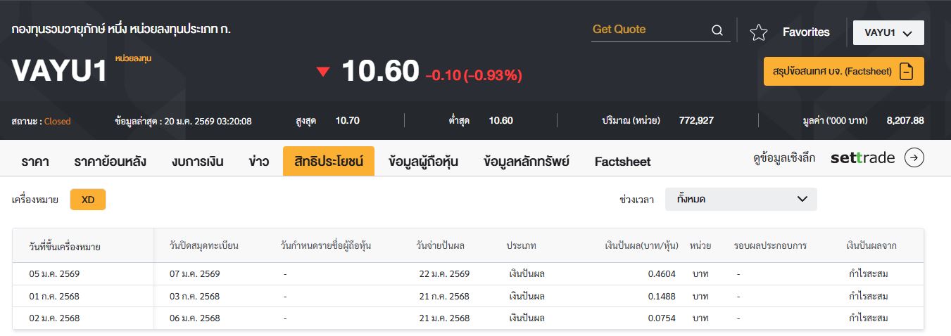 ถ้าคุณถือหน่วยลงทุน VAYU1 จำนวน