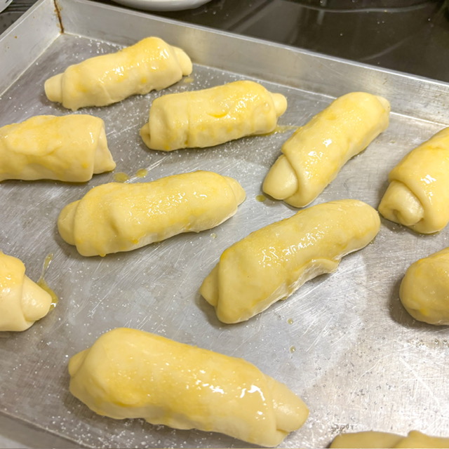 ปั้นเป็นก้อนกลมและรีดใส่ไส้กรอก และวางพักไว้ 2 ชม ผมวางไว้ในตู้อบ 40 องศา ที่ 2 ชม. อาจจะขึ้นช้าเพราะด้วยน้ำหนักของเนยกับน้ำตาลที่ใส่เยอะ จะขึ้นช้ากว่าปรกติ