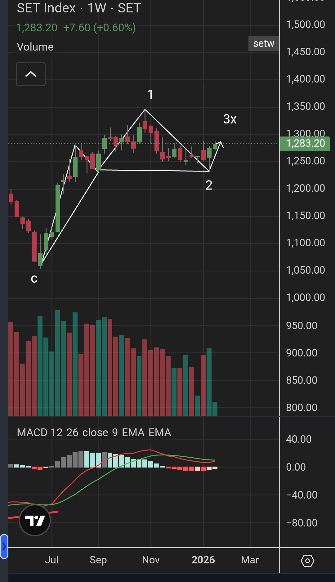 มโนว่า....SET กำลังสร้างทรงถ้วย Cup & Handle Chart Pattern...และเกิด Bullish Divergence ใน Week
