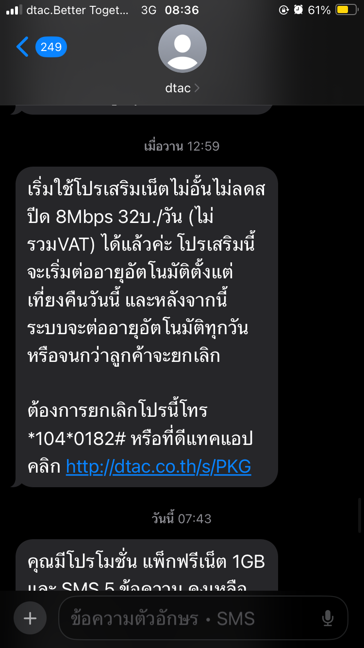 เมื่อวานตอนบ่ายโมง เติมเน็ตไปหนึ่งวันไม่อั้น พอมาวันนี้ดันใช้ไม่ได้ ทำไมคะ ดีแทค