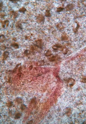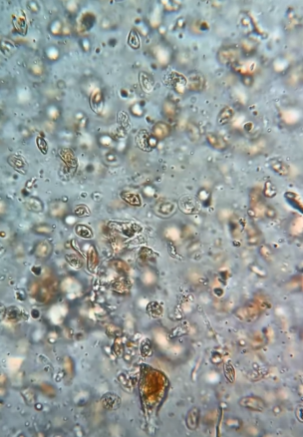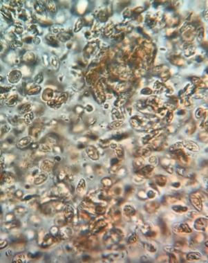 รูปที่ 3 - ส่องเข้าไปจะเจอเม็ดเลือดของหอยแครง ที่คล้ายๆ กับของคน