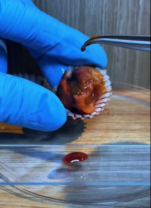 นำเลือด และ เนื้อหอยบางส่วนมาส่องกล้อง