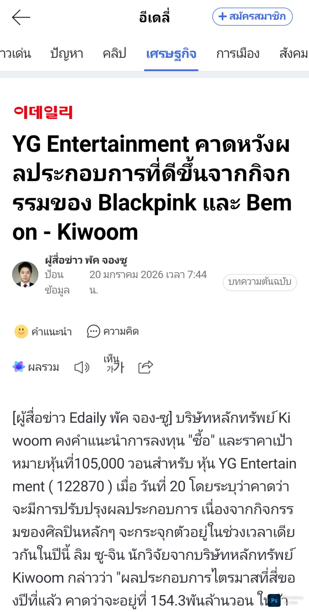 เมื่อเช้ามีรายงานจาก บริษัทหลักทรัพย์ Kiwoom รายงานว่า YG Entertainment คาดหวังว่าผลประกอบการจะดีขึ้นจากกิจกรรมของ BLACKPINK, BIGBANG และ BABYMONSTER “นี่เป็นช่วงเวลาที่ทรัพย์สินทางปัญญาหลักๆ เ