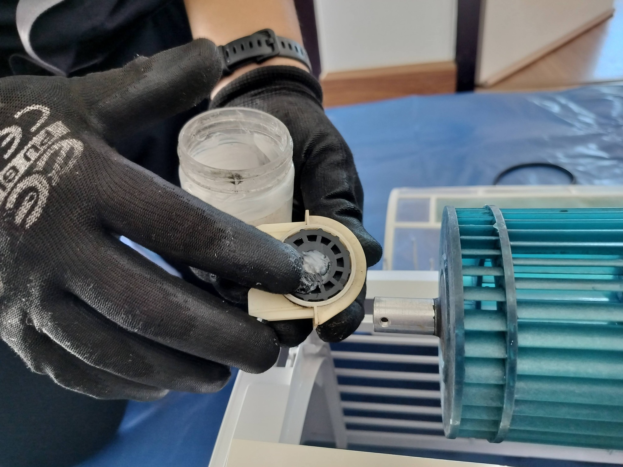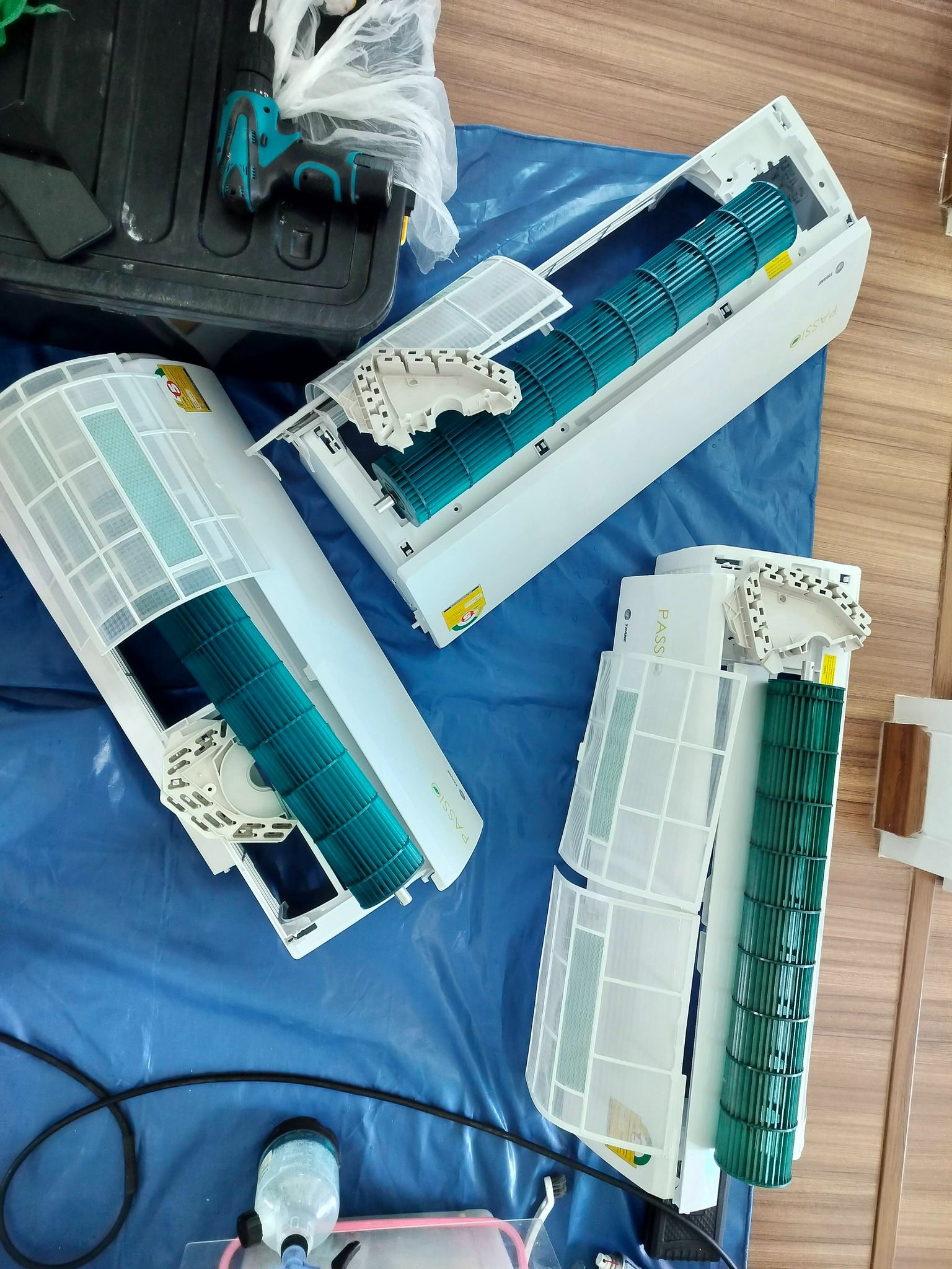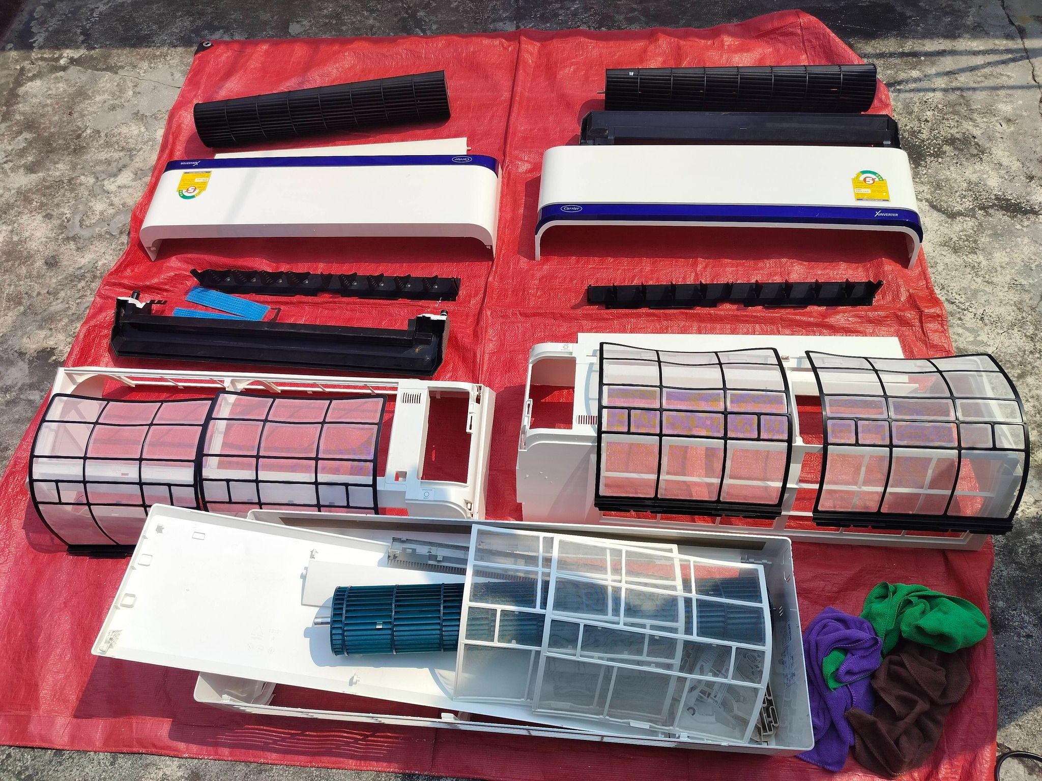 ในส่วนของงานแอร์ เราจะถอดพ้ดลมกรงกระรอกออกมาล้าง จะมีบ้างตัวที่ถอดไม่ได้เพราะแกนมอเตอร์เป็นสนิม ต้องใช้วิธีแขวนคอยล์ล้างซึ่งก็จะต้องเสียค่าล้างเพิ่ม แต่ก็จะได้แอร์สะอาดมาก ๆ ก่อนใส่ใบพัดเราจะใส่จารบีให้ด้วยครับ ก่อนล้างหลังล้าง เราจะทดสอบแอร์ให้ทุกครั้ง ดังนั้นไม่ต้องห่วงเรื่องรับประกัน