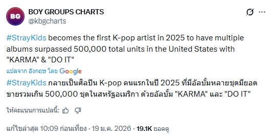 🔥 Stray Kids “DO IT”มียอดขายกว่า 500,000 ชุดและเป็น K-pop เพียงวงเดียวที่มีหลายอัลบั้มขายเกิน 5 แสนในสหรัฐอเมริกาปี2025