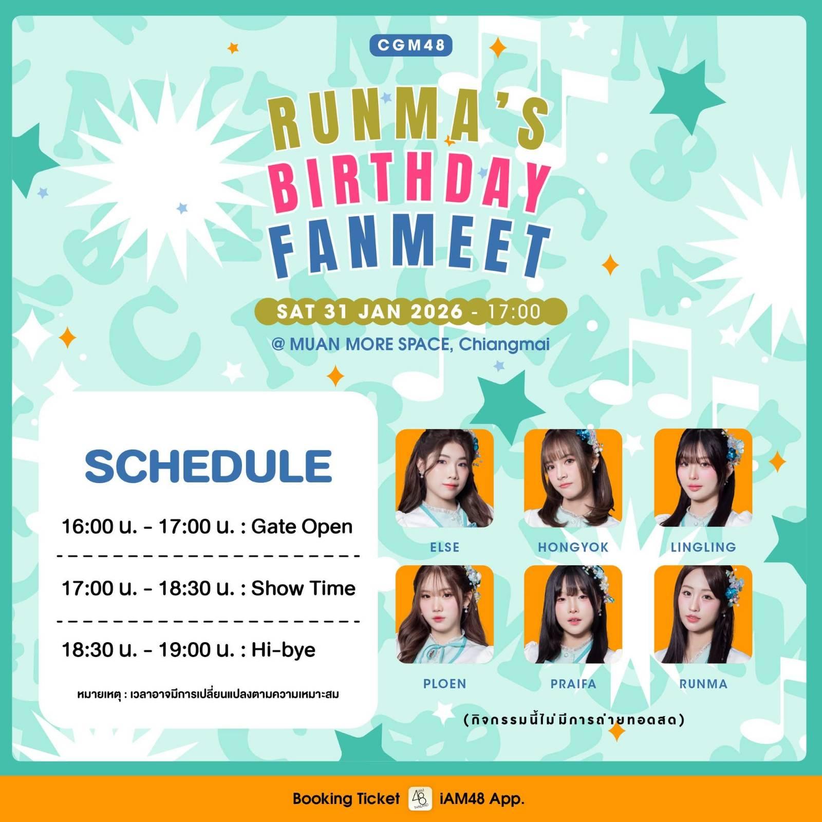 แฟนมีตวันเกิดรันม่า CGM48 วันเสาร์ที่ 31 มกราคมนี้