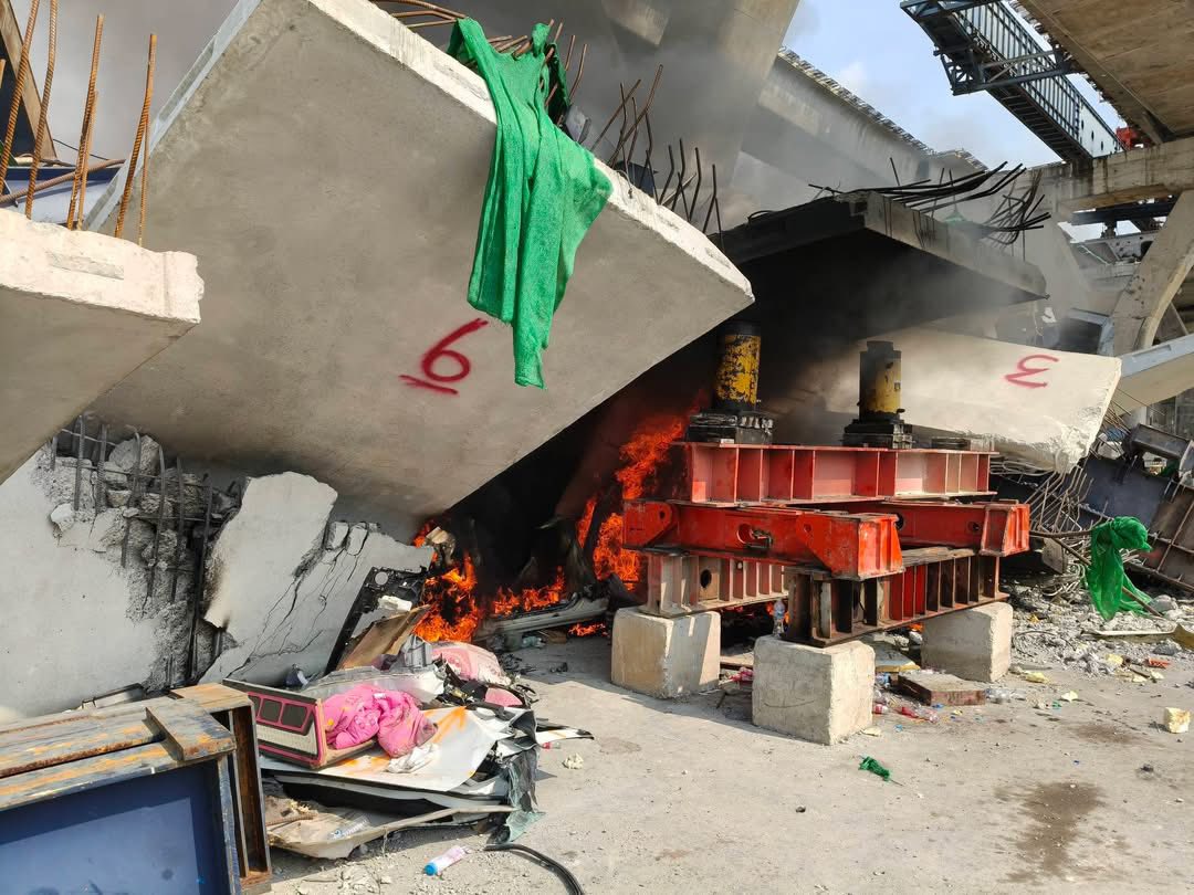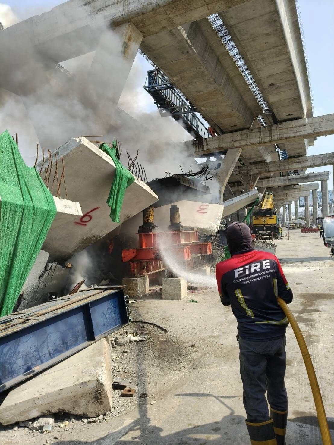 ด่วน! เกิดเหตุเพลิงไหม้ บริเวณที่เกิดเหตุเครนถล่ม ถนนพระราม 2 ขาออก