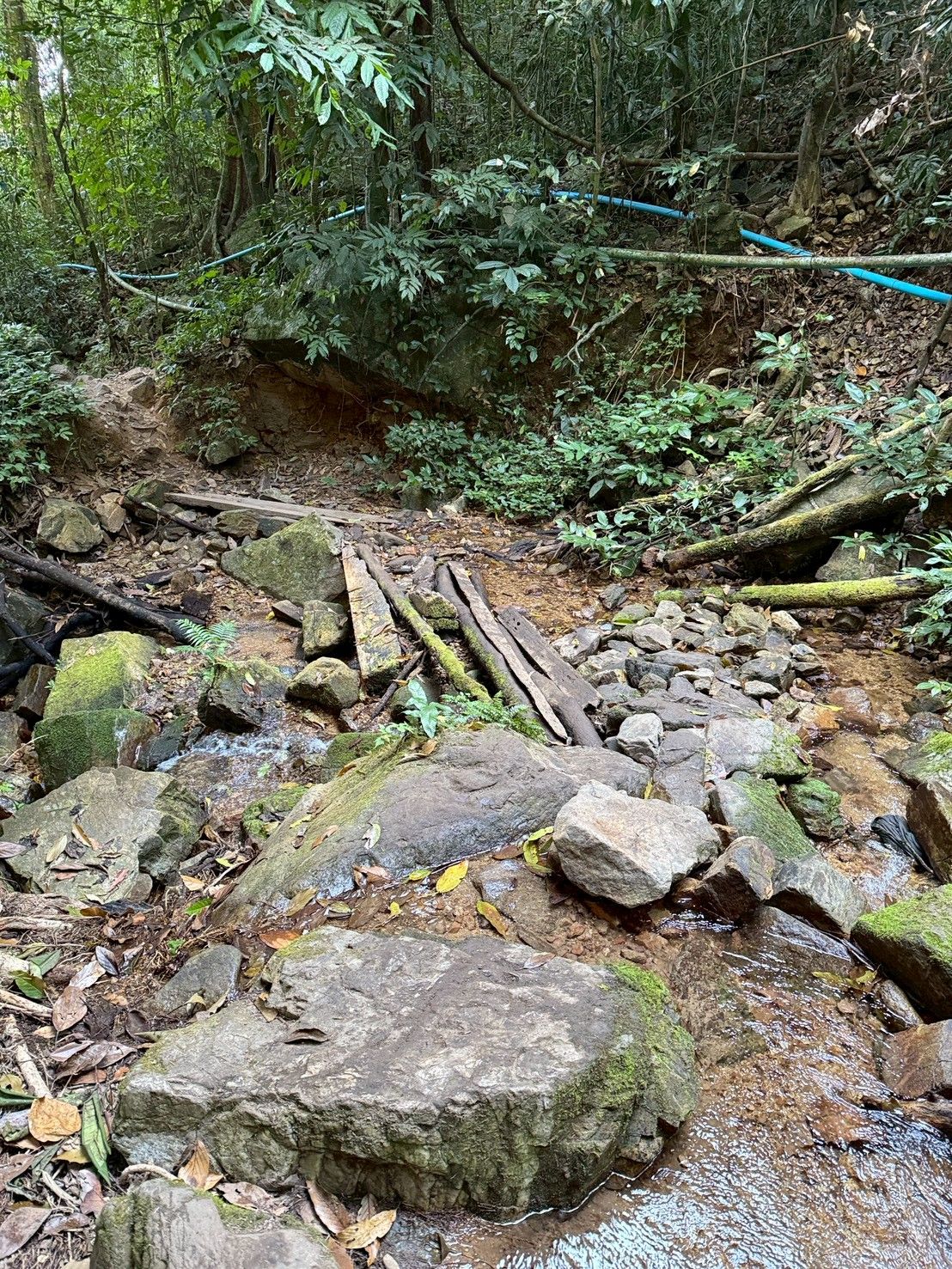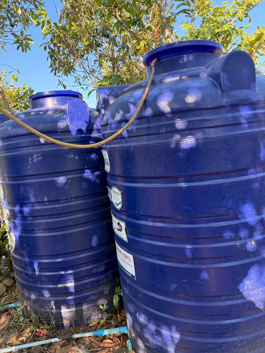 ส่วนน้ำ เห็นเค้าลากสายยางไกลเป็นกิโลจากลำธาร มาเติมลงถังไว้ให้ใช้ เข้าห้องน้ำล้างหน้า แต่ไม่มากพอสำหรับการอาบ ต้องเช็ดตัวด้วย ทิชชู่เปียกกัน