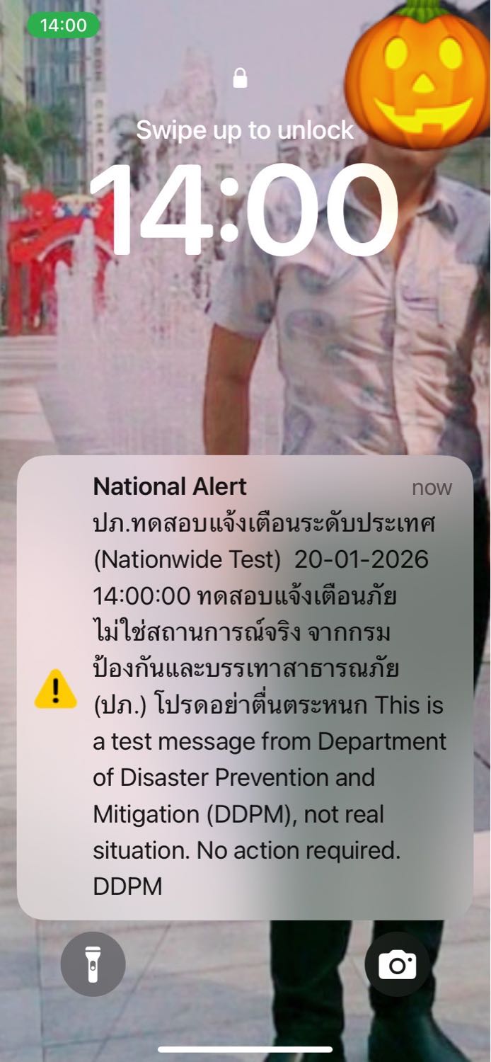 กรมป้องกันและบรรเทาสาธารณภัย (ปภ.) ทดสอบระบบแจ้งเตือนภัยระดับประเทศ ผ่านเทคโนโลยี Cell Broadcast ซึ่งเป็นการซ้อมรับมือกับสถานการณ์ภัยพิบัติขนาดใหญ่ที่อาจเกิดขึ้นในอนาคต