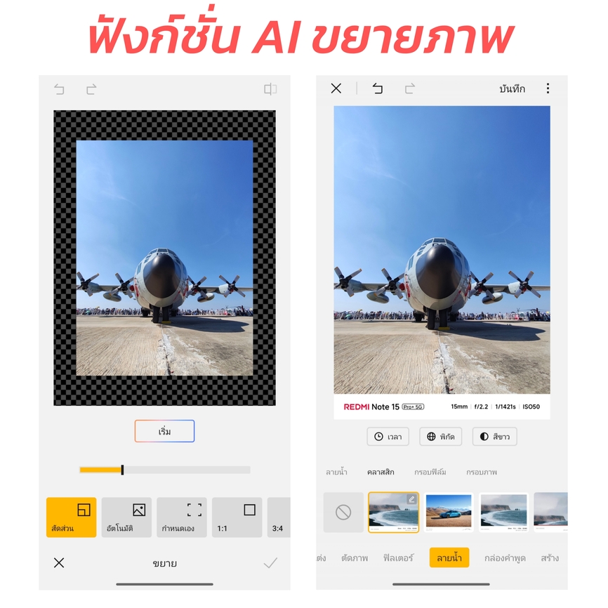 และยังมีฟังก์ชั่น AI แต่งภาพสวยๆมาให้หลายแบบ อาทิ AI ขยายภาพ & เพิ่มความคมชัด , AI ลบเงาสะท้อน , AI ลบบุคคลและวุตถุในภาพ , AI เปลี่ยนท้องฟ้าสวยๆหลายแบบ ถือว่าให้มาครบจริงๆครับ