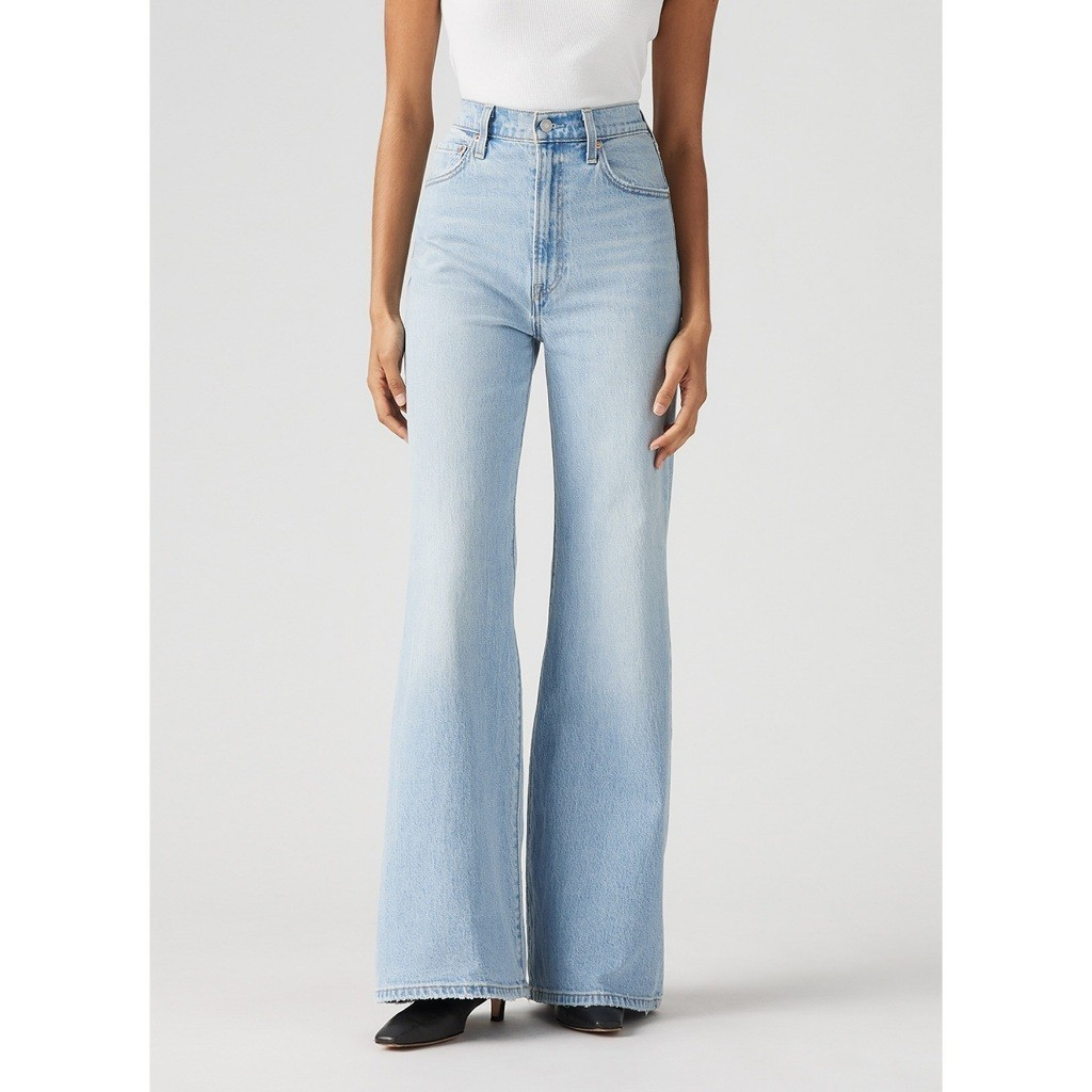 กางเกงยีนส์ Levi’s เอวสูง ขาบาน รุ่น Ribcage Bell เป็นทรงที่ช่วยจัดสัดส่วนได้ชัดมาก โดยเฉพาะคนที่อยากได้ลุคเอวคอดและขายาวแบบดูแพง จุดเด่นคือเอวสูงถึง 12 นิ้ว ช่วยเก็บช่วงเอวให้เรียบขึ้น ทรงพอดีช่วงสะโพกและเรียวตั้งแต่ต้นขาถึงเข่า แล้วค่อยปล่อยขาบานกำลังดี ทำให้ลุคดูวินเทจแบบไม่ต้องแต่งเยอะก็เด่นได้