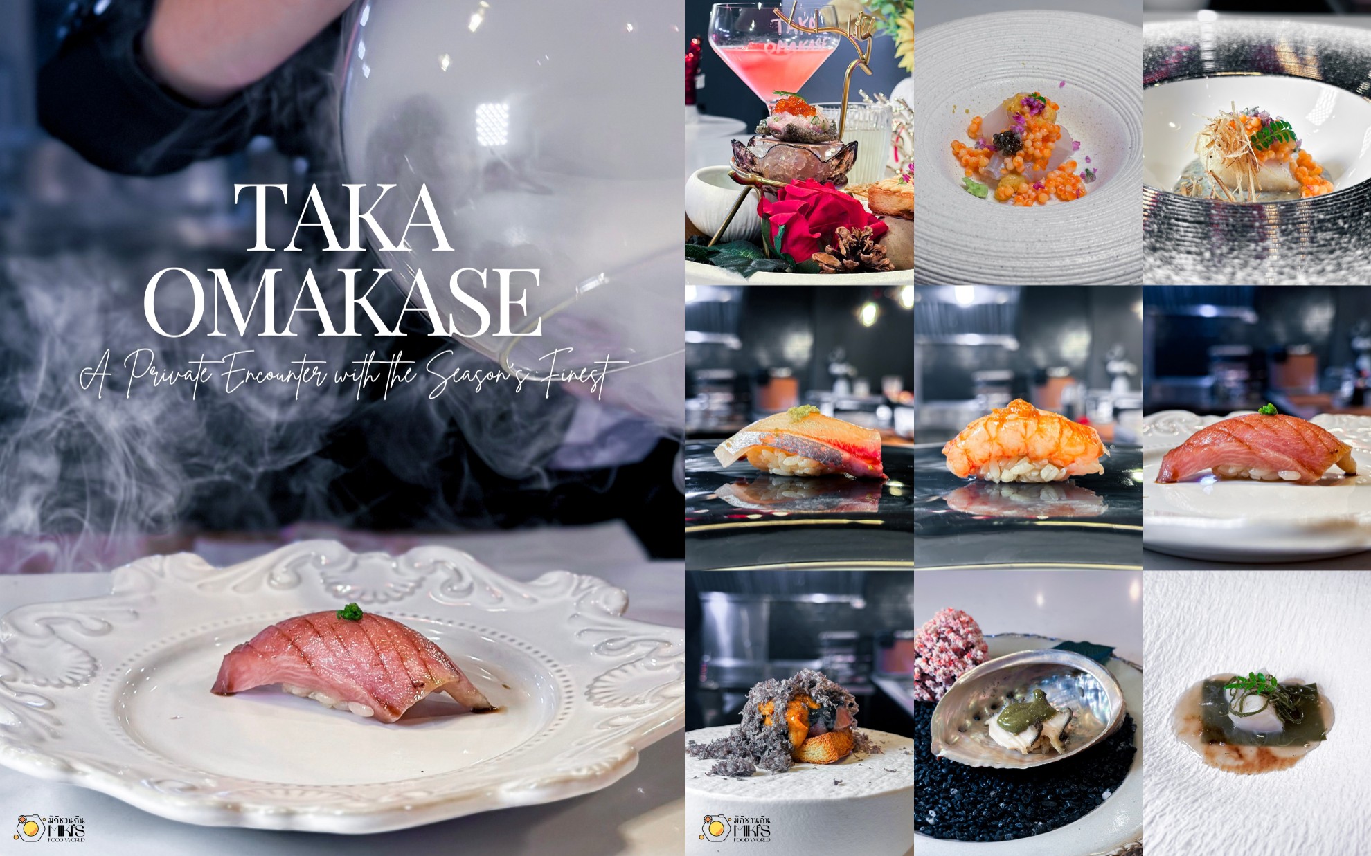 พามาบุกร้านโอมากาเสะที่ใครๆ ก็พูดถึง Taka Omakase โดย เชฟตี๋ เชฟสุดฮอตที่ดาราเซเลบจองตัวกันแน่น ตอนนี้เชฟย้ายร้านมาอยู่ที่สาธุประดิษฐ์แล้วนะ ร้านใหม่ไฉไลกว่าเดิม แต่ความอร่อยยังขลังจนลูกค้าประจำตามมากันเพียบ มิกิจัดเป็นคอร์ส Standard 2,590++ (15 คำ) บอกเลยว่าคุ้มจนต้องมาซ้ำแน่ๆ มาดูกันว่าเชฟรังสรรค์คำไหนมามัดใจเราบ้าง