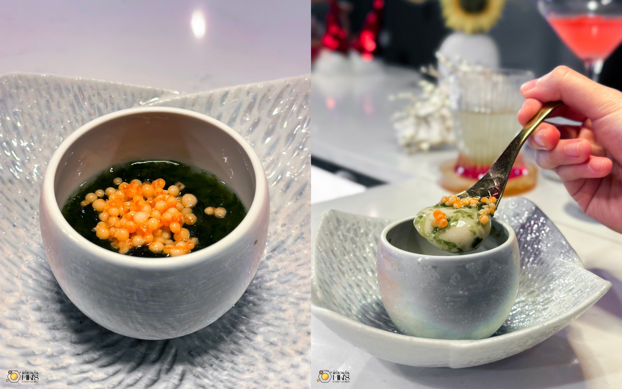 Chawanmushi ไข่ตุ๋นเนื้อเนียนเด้ง ในซุปสาหร่ายจากโอกินาวา มีความหอมเฉพาะตัว ท็อปด้วยอิคุระนึ่งเพิ่มความกรุบ