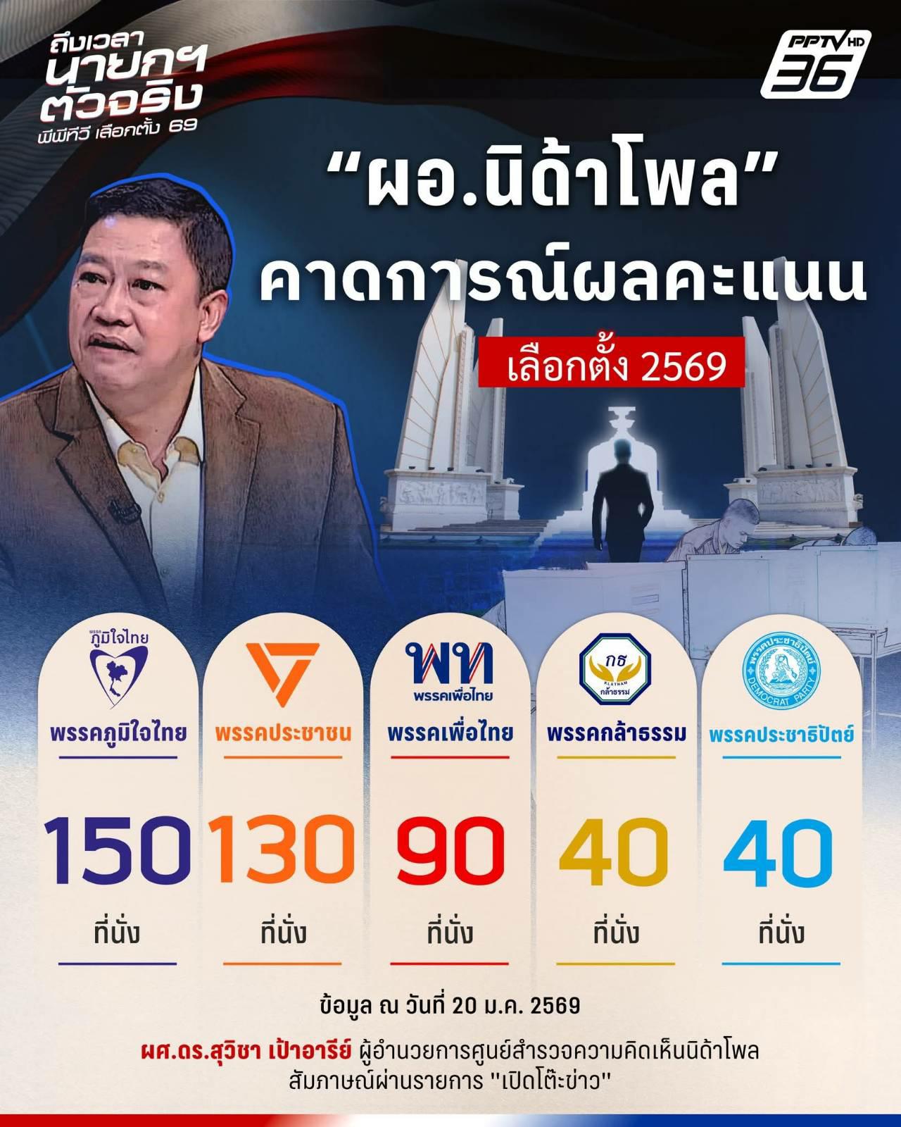 ผศ.ดร.สุวิชา เป้าอารีย์ ผู้อำนวยการศูนย์สำรวจความคิดเห็นนิด้าโพล คาดการณ์ผลคะแนน การเลือกตั้ง 2569