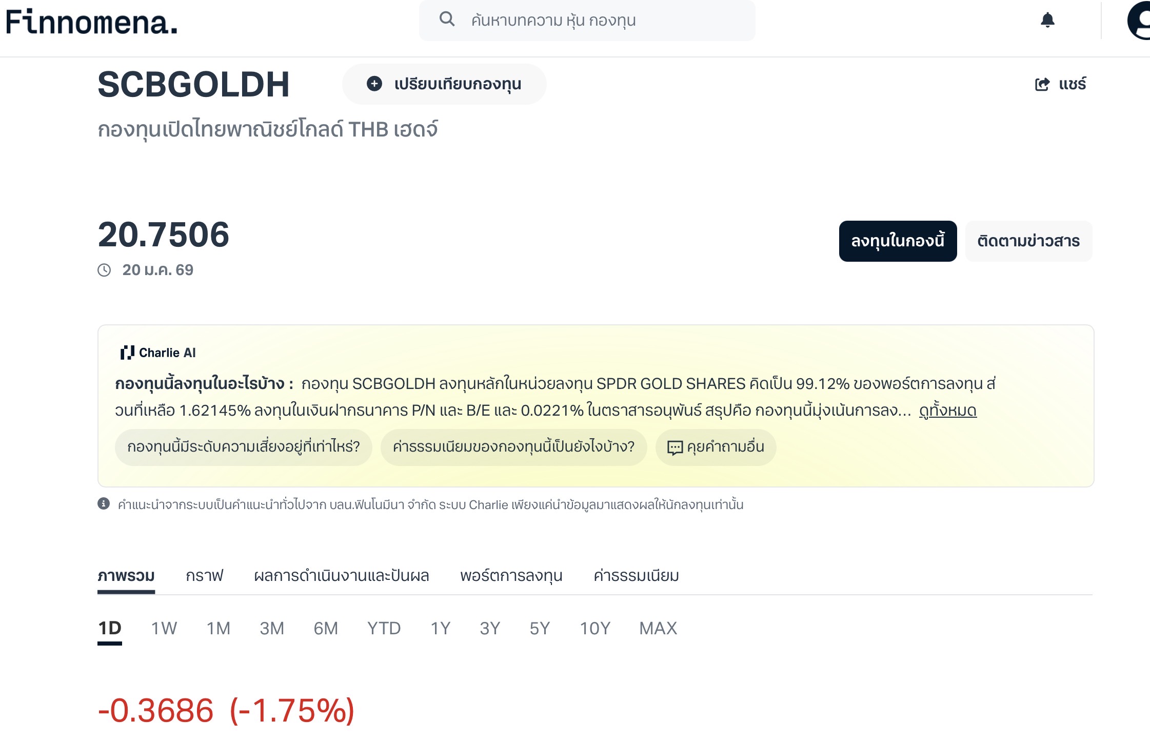 ทำไม NAV กองทอง SCBGOLDH, SCBGOLDHRMF วันนี้( 20 มค ) -1.7% ขณะที่ ราคาปิด spdr gold sp +1.43% (new high)