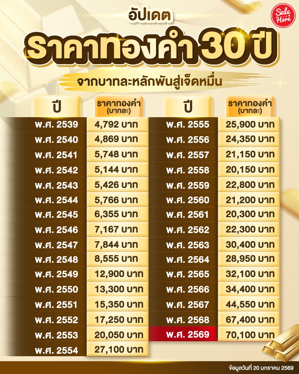 📣 จากวันที่ทองราคาบาทละไม่กี่พันใน 30 ปีที่ผ่านมา จนตอนนี้ราคาทะลุ 70,000 เป็นที่เรียบร้อยแล้วในปี 2569 🌟