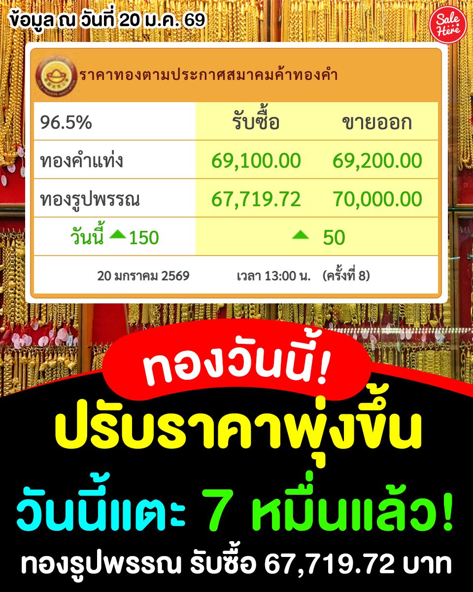 📣 ราคา #ทองวันนี้ พุ่งแรง! 🤩✨ วันนี้! ราคาขายพุ่งแรง 70,000 บาทแล้วววว ! 😮 ทองรูปพรรณ รับซื้อ 67,719.72.- ขายออก 70,000.- ทองคำแท่ง รับซื้อ 69,100.- ขายออก 69,200.- 📈 บอกเลยว่าใครมีทองและอยากขายแลกเป็นเงิน ขายได้ขาย! 💰โอกาสมาขนาดนี้ เรียกว่าพุ่งสูงสุดไปเลยยย 🥳🎉