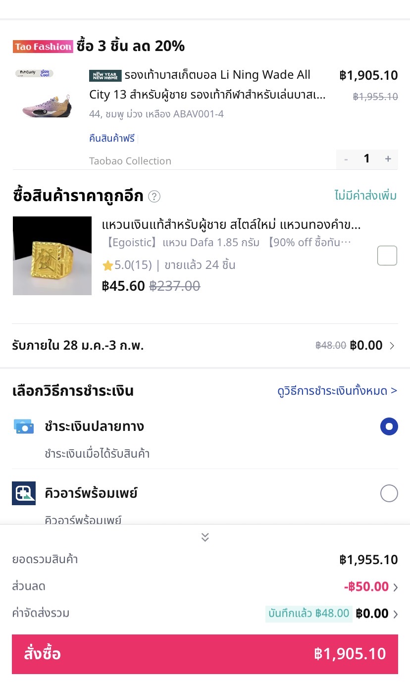 https://www.facebook.com/photo.php?fbid=542846229135915&set=a.542846215802583.1073741907.329445357142671&type=1&theater จากเพจนี้อ่ะครับผมเห็นราคา li ning wadeแล้วเหลือ1200มันถูกจนน่าตกใจม