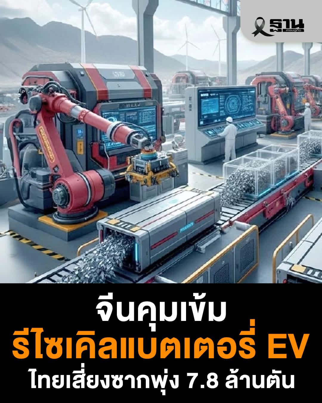 จีนเดินหน้าคุมรีไซเคิลแบตเตอรี่รถยนต์ไฟฟ้า เริ่มปี 2026 สร้างระบบติดตามทั้งวงจร ผู้เชี่ยวชาญเตือน หากไทยไม่เร่งวางระบบจัดการ อาจต้องรับมือซากแบตเตอรี่สะสมสูงถึง 7.8 ล้านตัน กระทบสิ่งแวดล้อมและโอกาสเศรษฐกิจหมุนเวียนในอนาคต