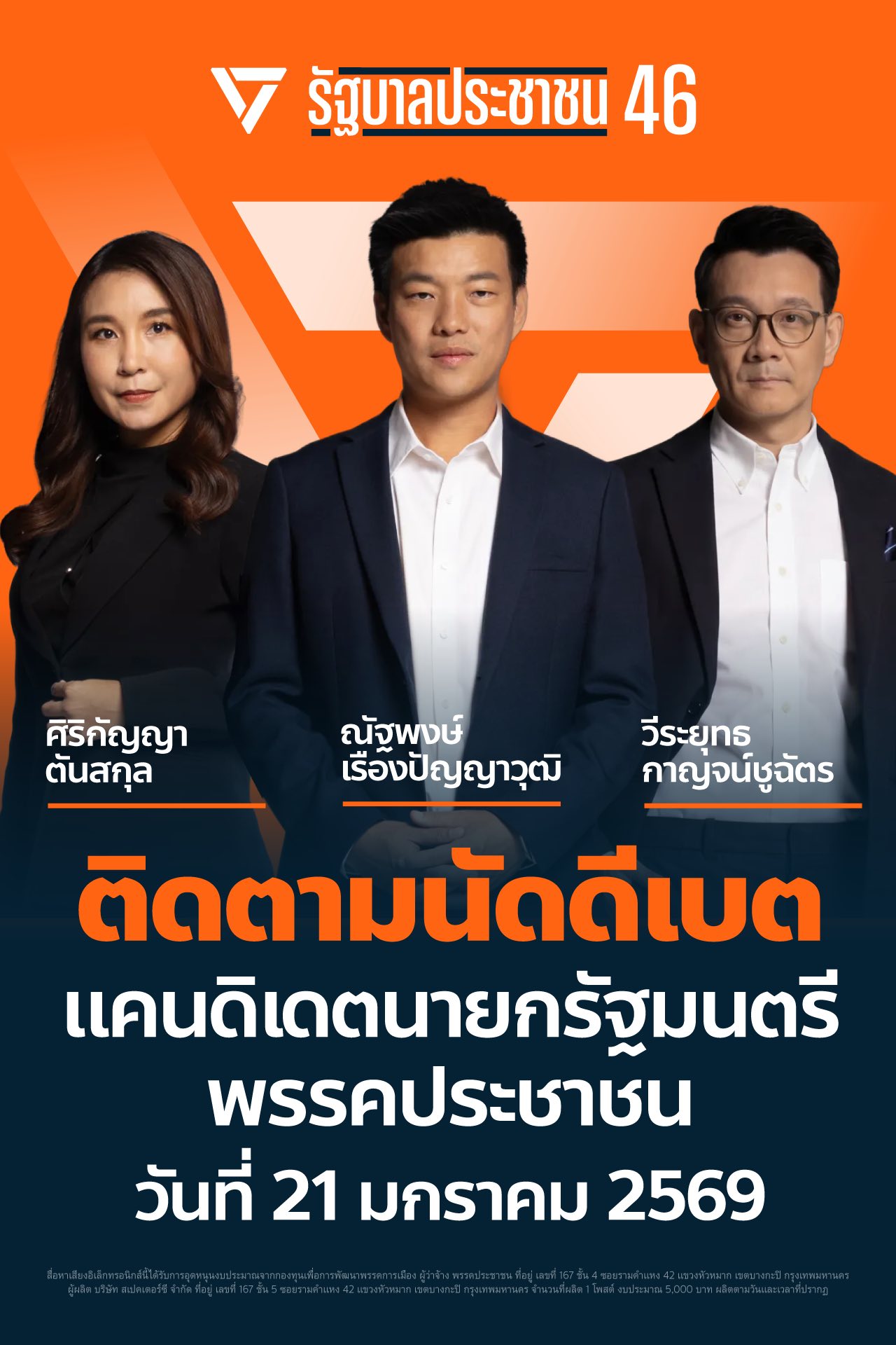 วันพุธที่ 21 มกราคมนี้! ติดตามนัดดีเบตแคนดิเดตนายกรัฐมนตรี พรรคประชาชน