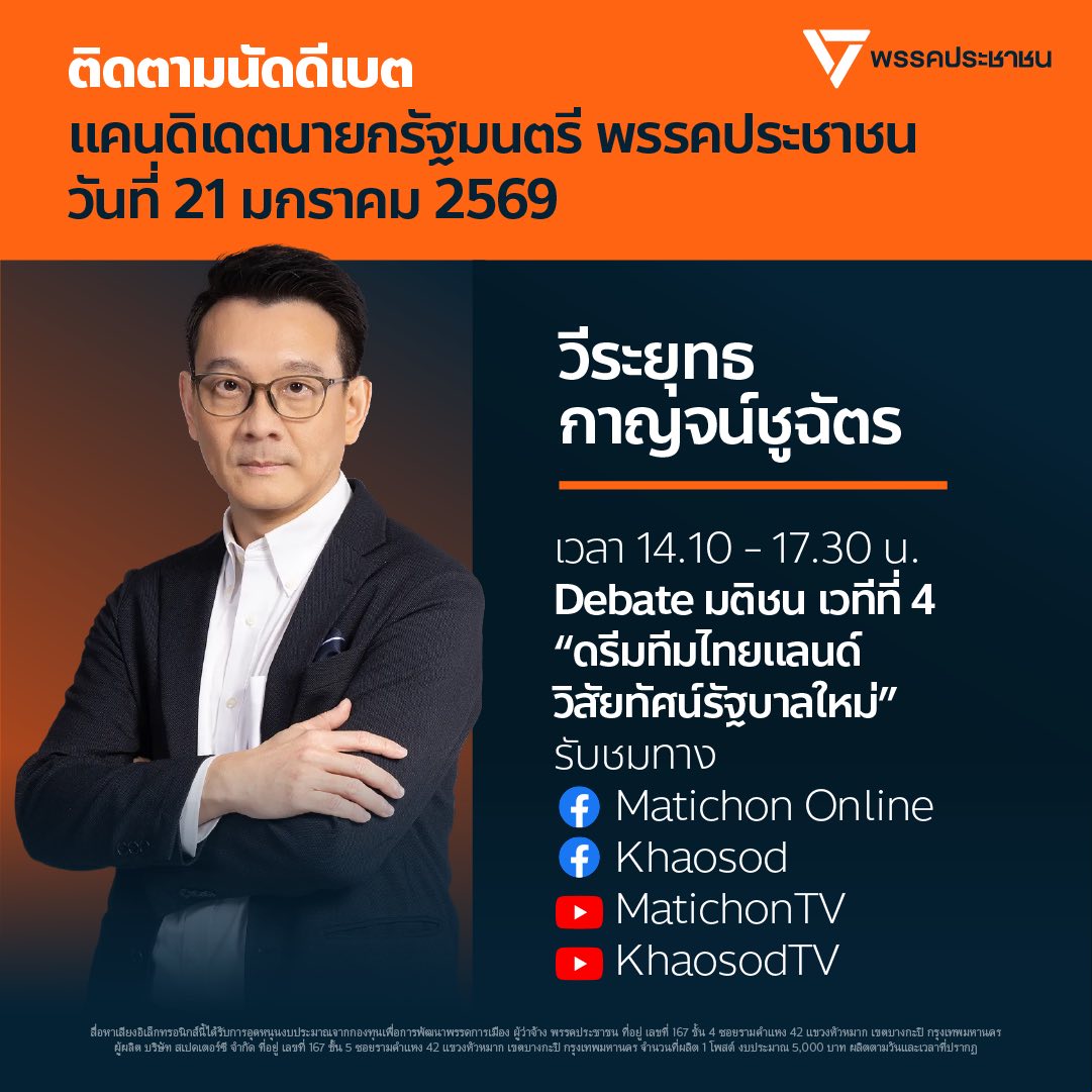 [img]https://static.xx.fbcdn.net/images/emoji.php/v9/td7/2/16/1f34a.png[/img]Debate มติชน เวทีที่ 3 แสดงวิสัยทัศน์ “ประเทศไทยภายใต้นายกชื่อ….”
