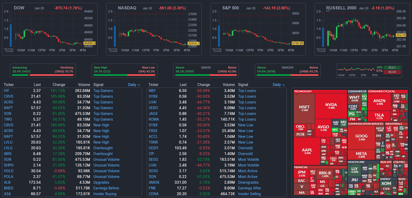 ส่วนดัชนี Dow Jones Industrial Average ร่วงลง 869.18 จุด หรือ 1.76% ปิดที่ 48,490.15 จุด