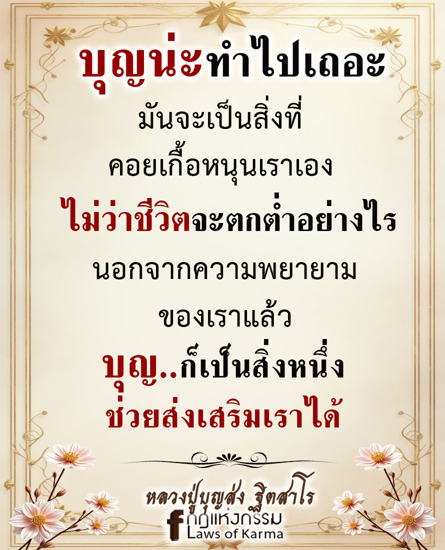 บุญนะทําไปเถอะมันจะเป็นสิ่งที่คอยเกื้อหนุนเราไม่ว่าชีวิตจะตกตํ่าอย่างไรนอกจากความพยายามแล้วยังมีบุญที่คอยช่วยเรา