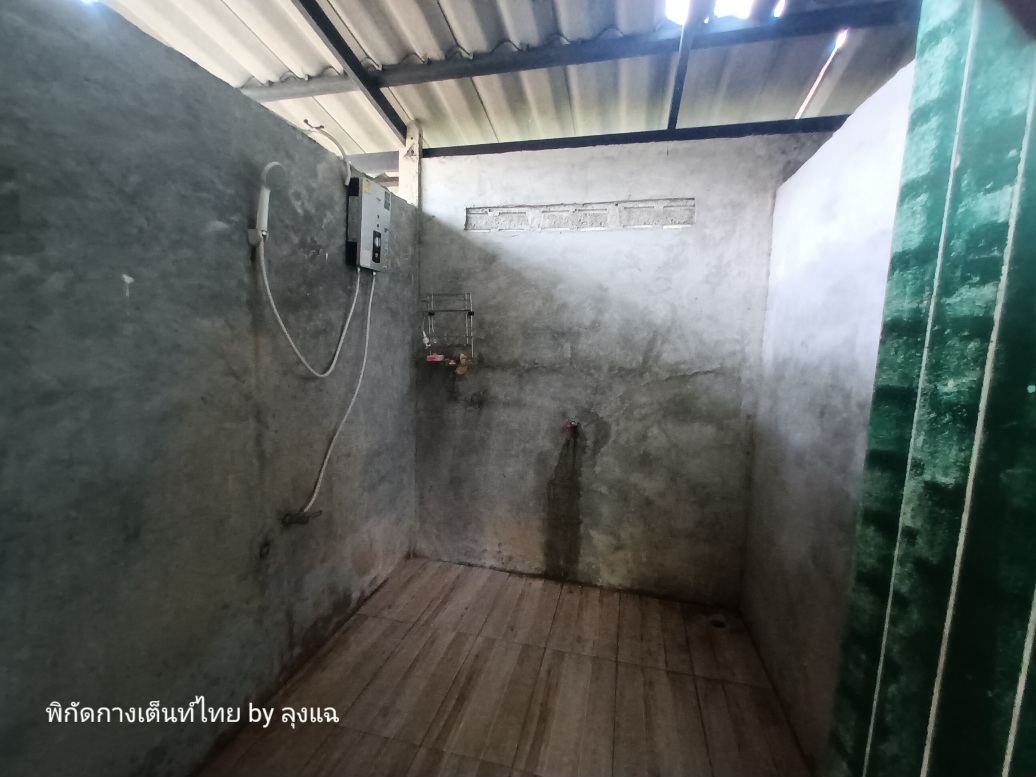 6 โมงเย็น ขออาบน้ำ ห้องน้ำห่างซัก 50 ม. สร้างง่ายๆ แต่สะอาดดี ที่สำคัญมีน้ำอุ่นด้วย อาบได้สบายตัวมากๆ เลยครับ (ค่ากางร้อยเดียว ทีทั้งไฟพ่วง น้ำอุ่น)