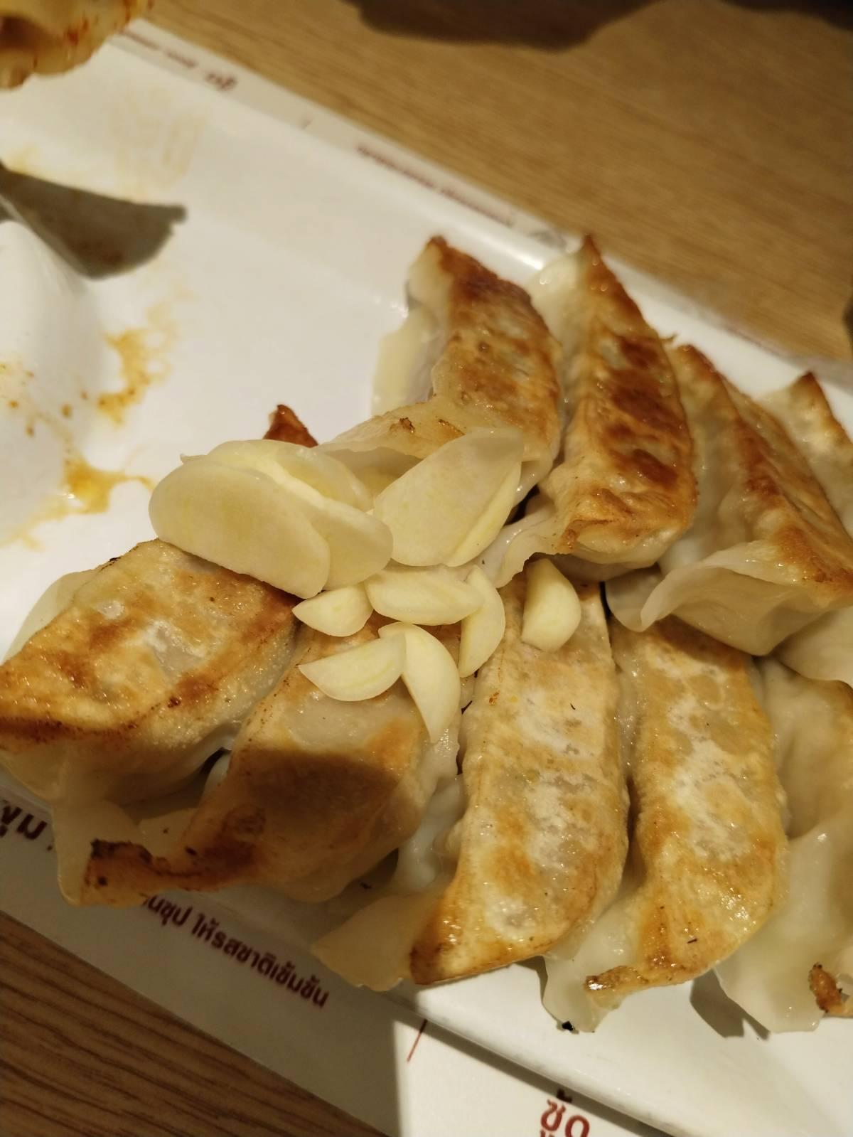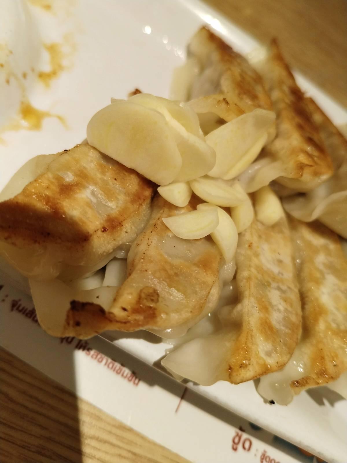 จัดไปเกี้ยวซ่า ใส่กระเทียมสดนำมาเองครับ โต๊ะข้างๆ คงตกใจกับกลิ่น