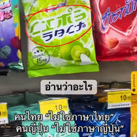 เมื่อผู้ใช้โซเชียล @shichang_chomphuu เป็นคนญี่ปุ่นอาศัยอยู่ในไทย ได้โพสต์คลิปลูกอมยี่ห้อหนึ่งที่เห็นวางขายทั่วไป แต่สิ่งที่ทำให้เขาถึงกับกุมขมับคือ "ภาษาญี่ปุ่นบนซอง" เขาซึ่งเป็นเจ้าของภาษาแท้ๆ กลับอ่านไม่ออกแม้แต่ตัวเดียว!