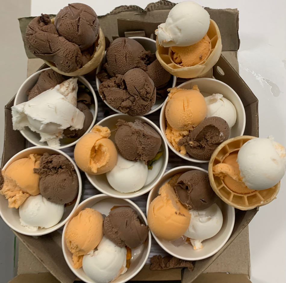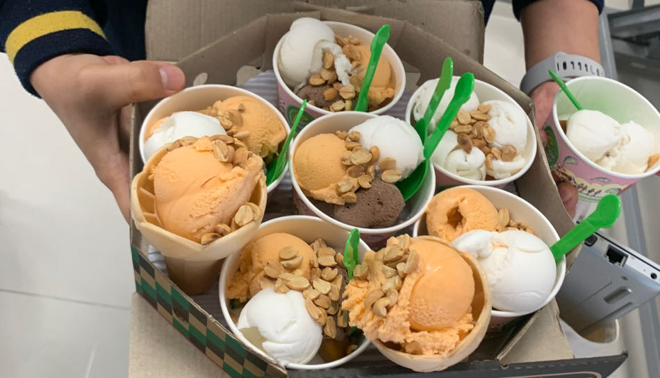 เลี้ยง Pizza 10 ถาด ไอติมถังตัก