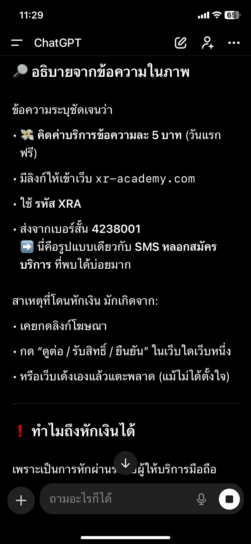 ตามหัวข้อเลยค่ะ มีใครเคยโดนไหมคะมันสมัครเองและตอบกลับข้อความเองค่ะ บิลเรามาโดนเก็บ170บาท พอโทรหา call center ของ AIS เกือบ20นาที ไม่มีคนรับสาย เรามั่นใจว่าไม่ได้พิมเองแน่นอนเพราะ 23:32 เรานอนแล้วค่ะ แถมไปถามแชท GPT มันคือการหลอกลวงด้วย มีใครเคยโดนไหมคะ