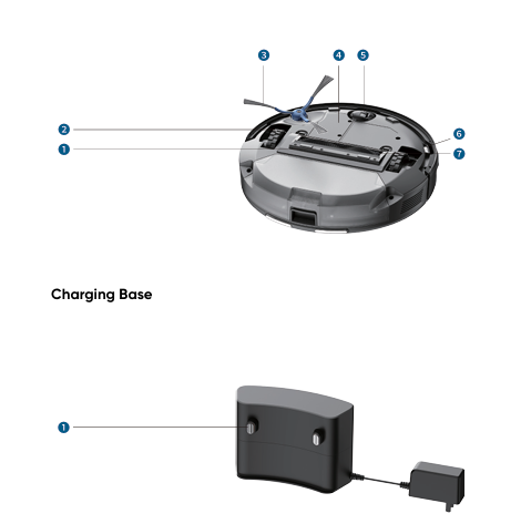 ตัวหุ่นยนต์จะประกอบด้วย ตัวชาร์จ แปรงด้านข้าง แปรงลูกกลิ้ง กล่องเก็บฝุ่น