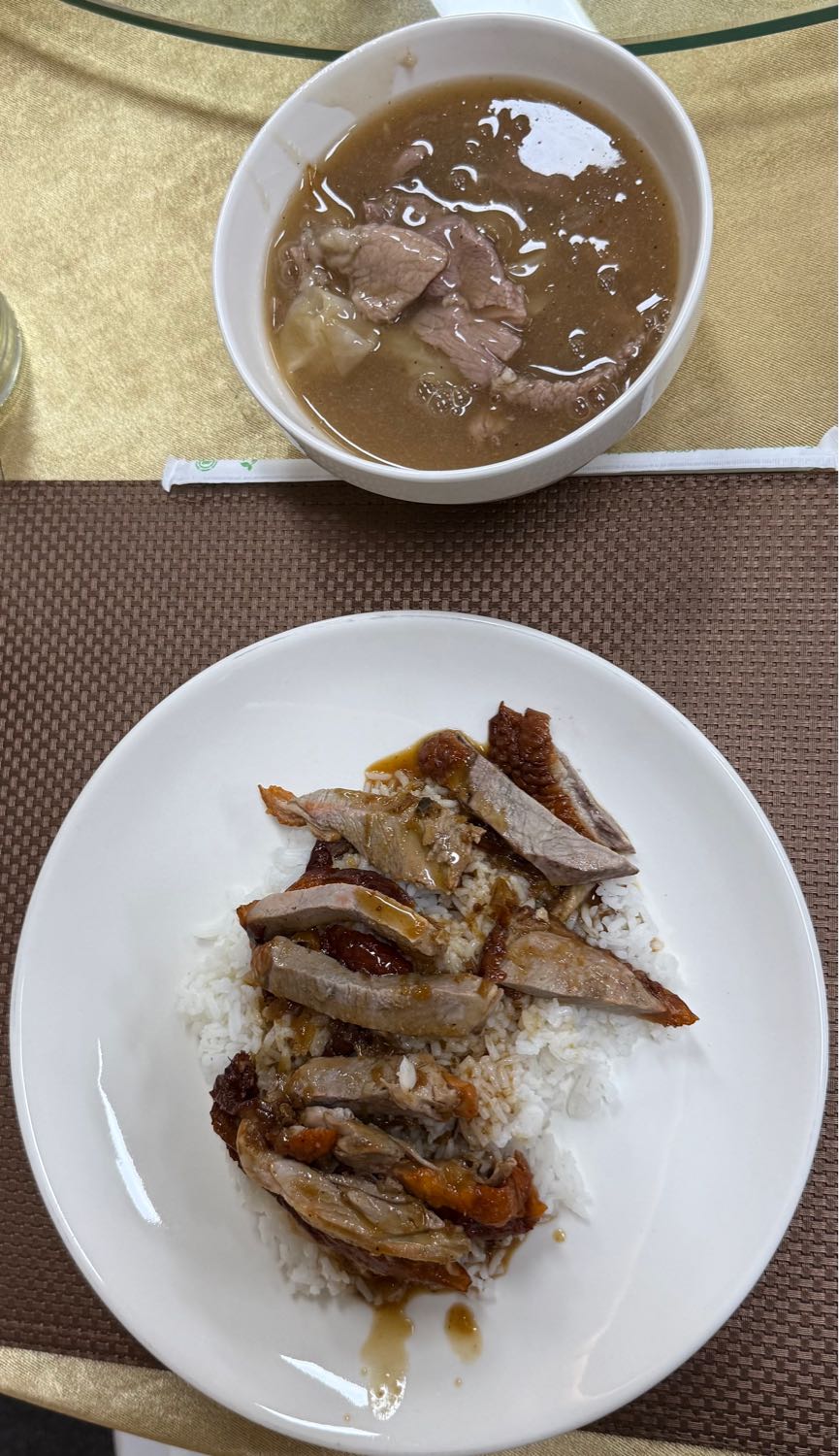 จัดข้าวหน้าเป็ดย่าง 1 ราดหน้าหมู 1 ต่อด้วยลำใย