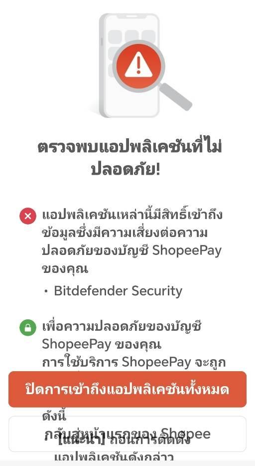 Shopee ให้ปิดโปรแกรมป้องกันไวรัส