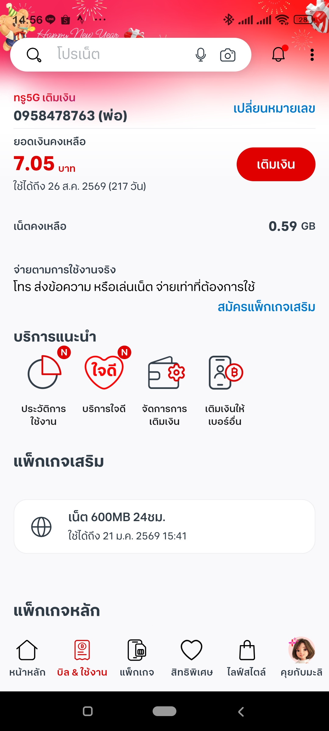 True ตรวจสอบแพคเกจ และโปร หมายเลข 0958478763..ให้หน่อยครับเติมเงินสมัครแพคเกจไปแล้วไม่ขึ้นให้แต่เงินหาย
