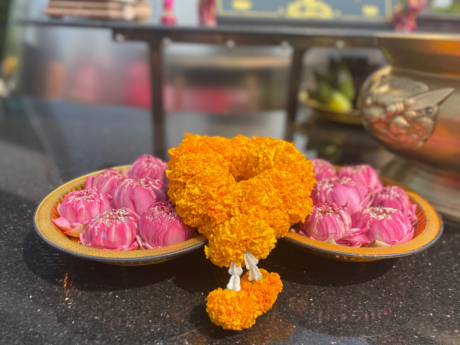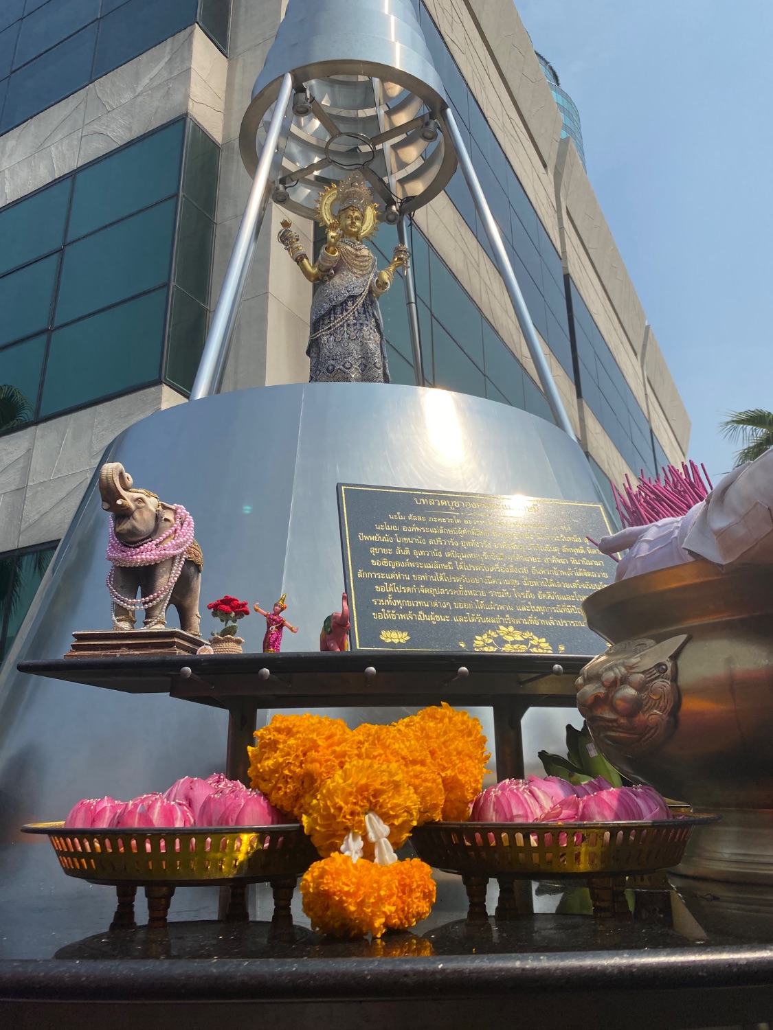 บริเวณชั้น 4 จะมีร้านจำหน่ายดอกบัว พวงมาลัย เป็นชุดๆ ครับ