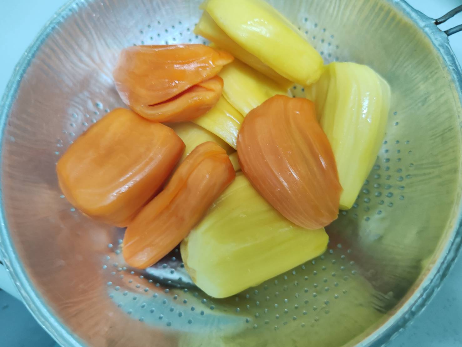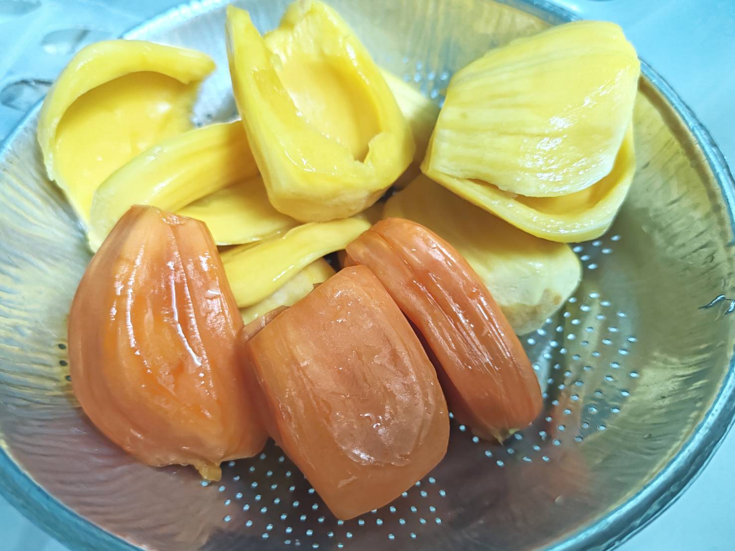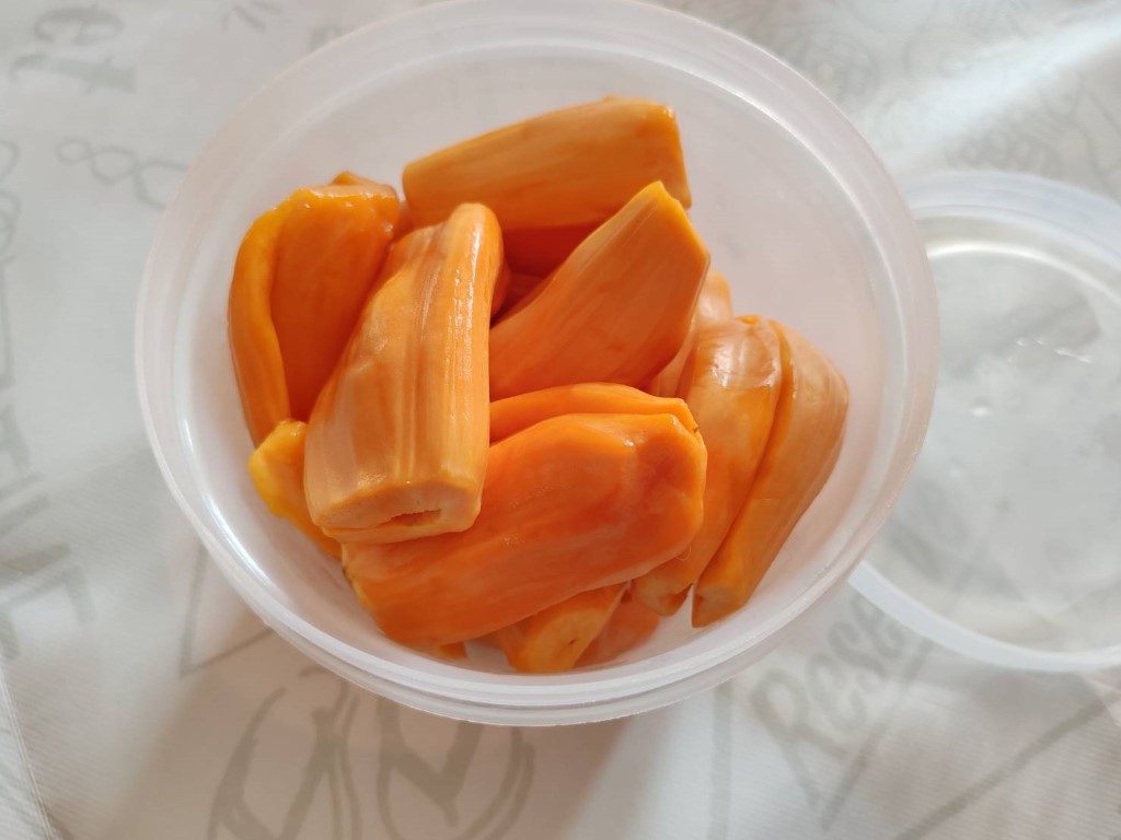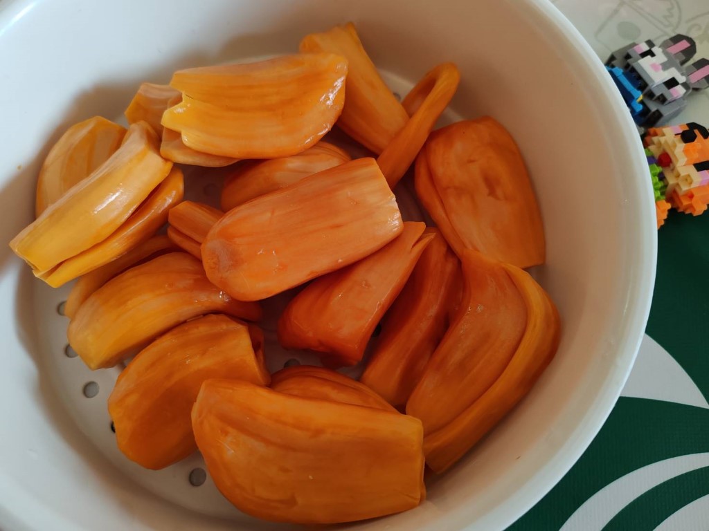 ปิดท้ายด้วยผลไม้นะครับ อันนี้จริงๆ น้องที่เคยทำงานด้วยกันเค้าปลูกที่บ้าน เลยแกะเอามาฝาก ขนุน สีแดง แดงสุริยาาาาาาาา ชอบมากครับ อร่อย