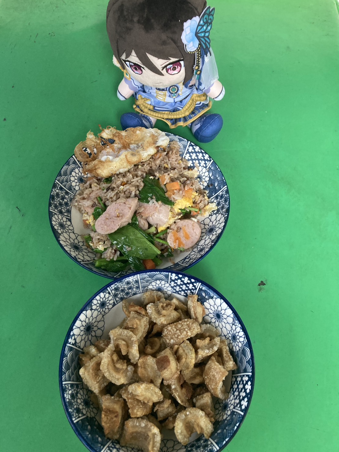 ข้าวผัดแหนมปลากราย กับแคบหมูทำเอง