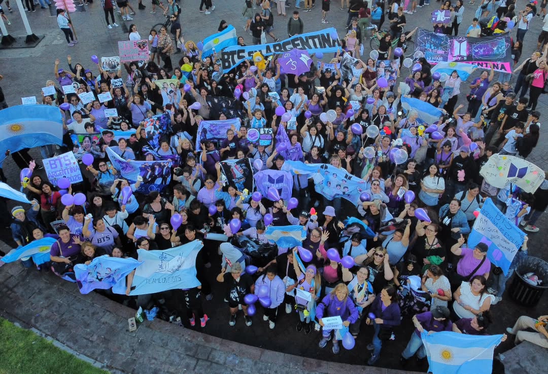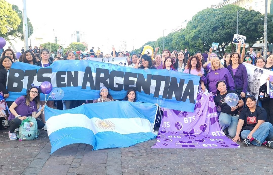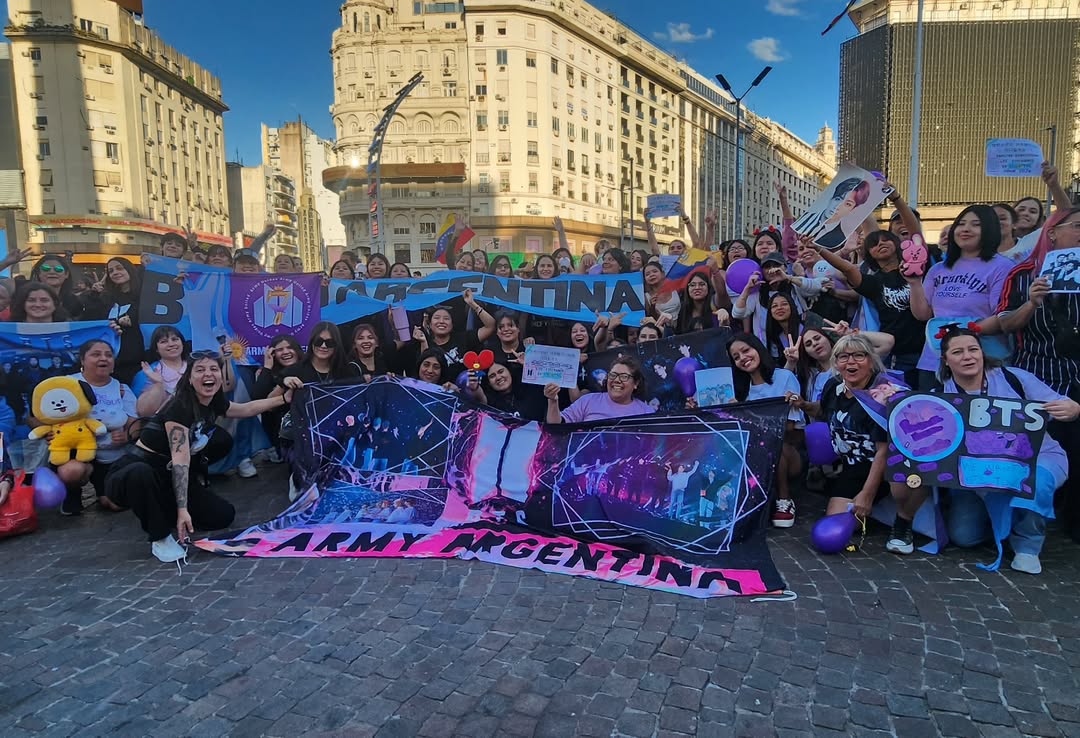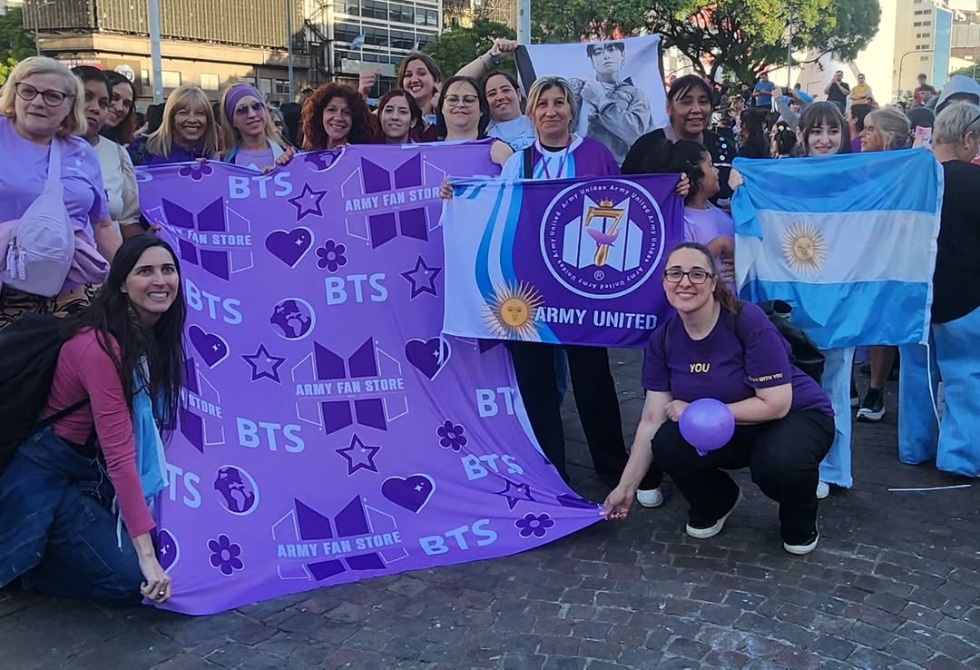 แฟน ARMY ในอาร์เจนตินาตื่นเต้นมาก จัด "juntada morada" (การรวมตัวสีม่วง) ที่ Obelisco (อนุสาวรีย์สัญลักษณ์ของ Buenos Aires) เพื่อเฉลิมฉลอง มีการจุดเทียน ขับรถพาเหรดสีม่วง และโพสต์ไวรัลในโซเชียล
