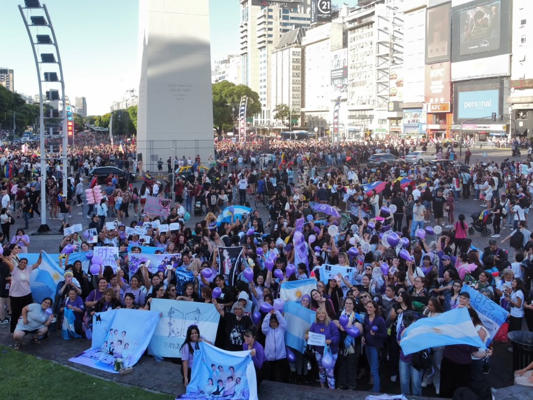 เหล่า ARMY BTS ทั่วอาร์เจนตินา มารวมตัวกันที่อนุสาวรีย์โอเบลิสก์ เพื่อเฉลิมฉลองหลังจากมีประกาศทัวร์ BTS ที่อาร์เจนตินา