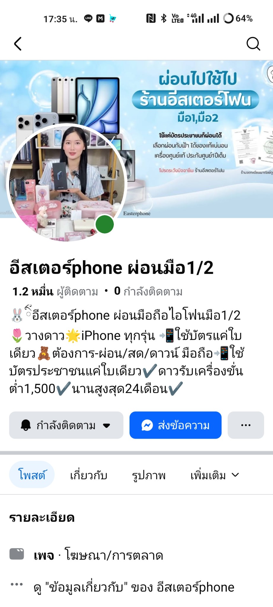 สอบถามเครดิตร้าน อีสเตอร์phone ในfacebook , ครับ