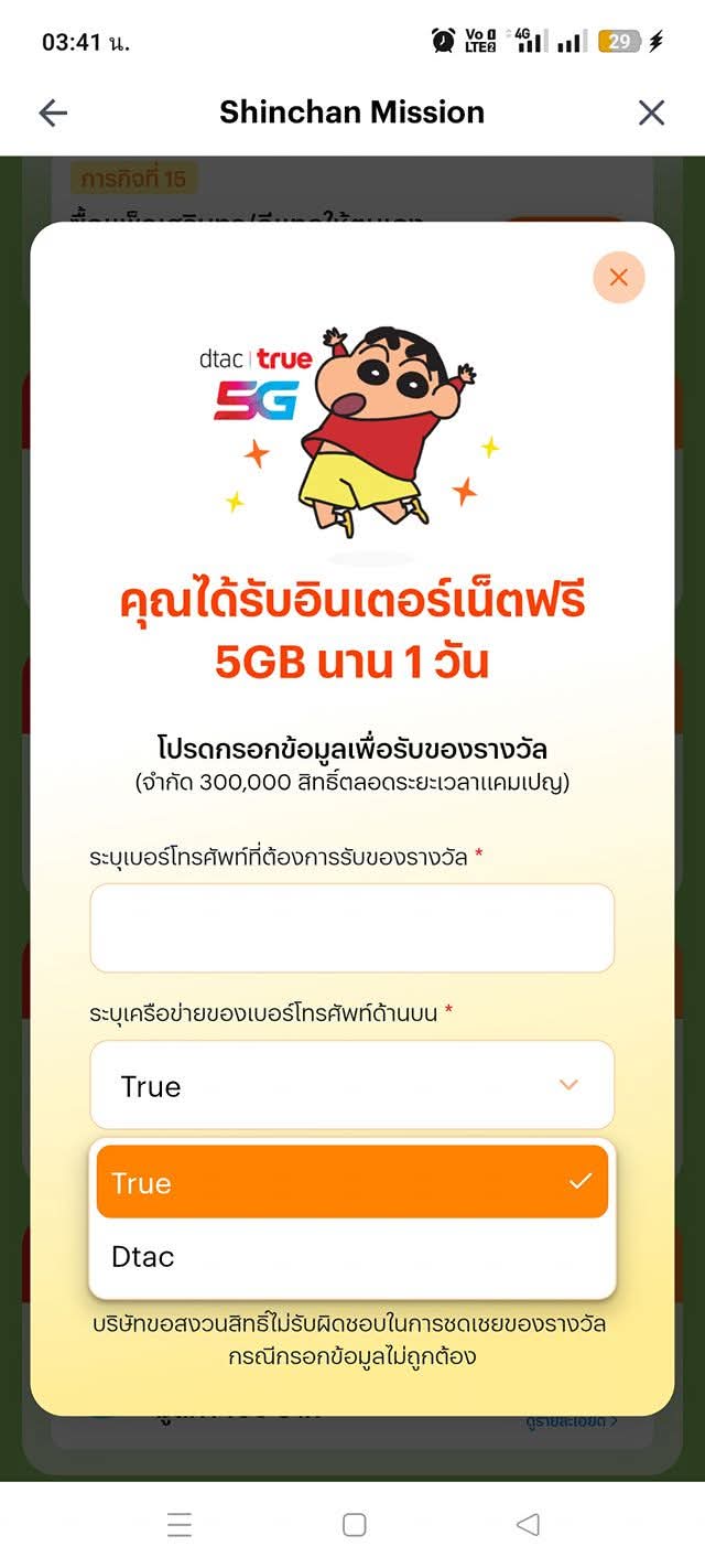 True กดรับเน็ต 1 gb จากกิจกรรมเช็คอินในแอพไม่ได้