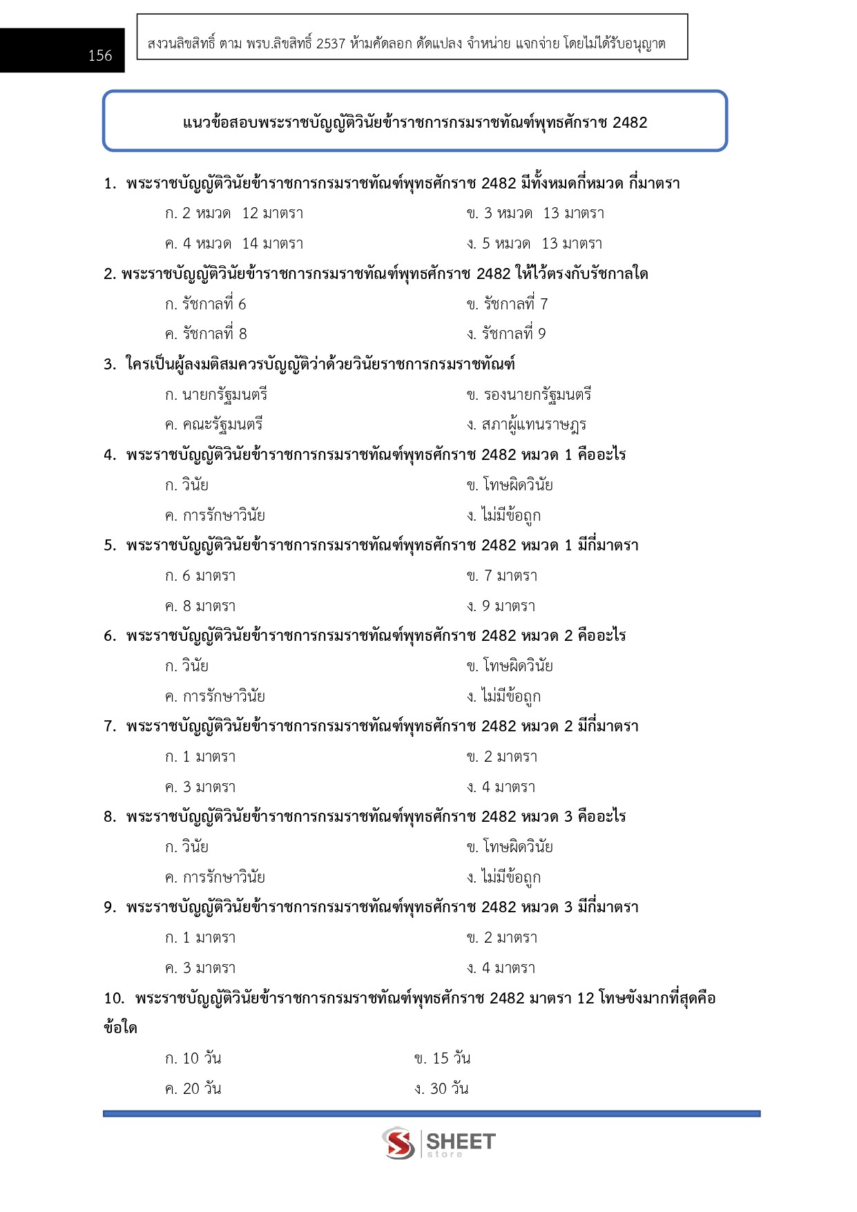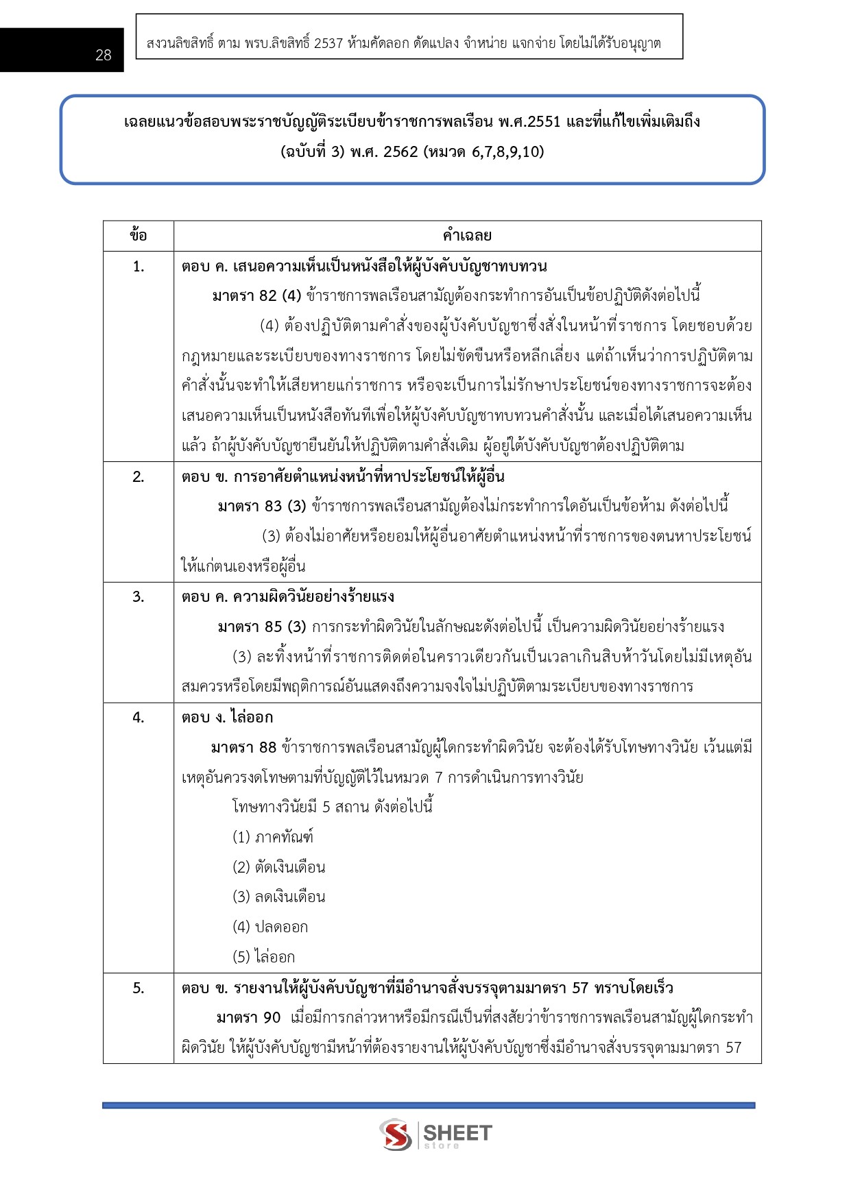 - แนวข้อสอบสรุปสาระสำคัญพระราชบัญญัติระเบียบข้าราชการพลเรือน พ.ศ. 2551 เฉพาะหมวด 6 หมวด 7 หมวด 8 หมวด 9 และหมวด 10