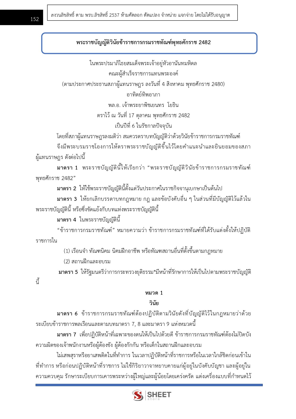- พระราชบัญญัติวินัยข้าราชการกรมราชทัณฑ์พุทธศักราช 2482