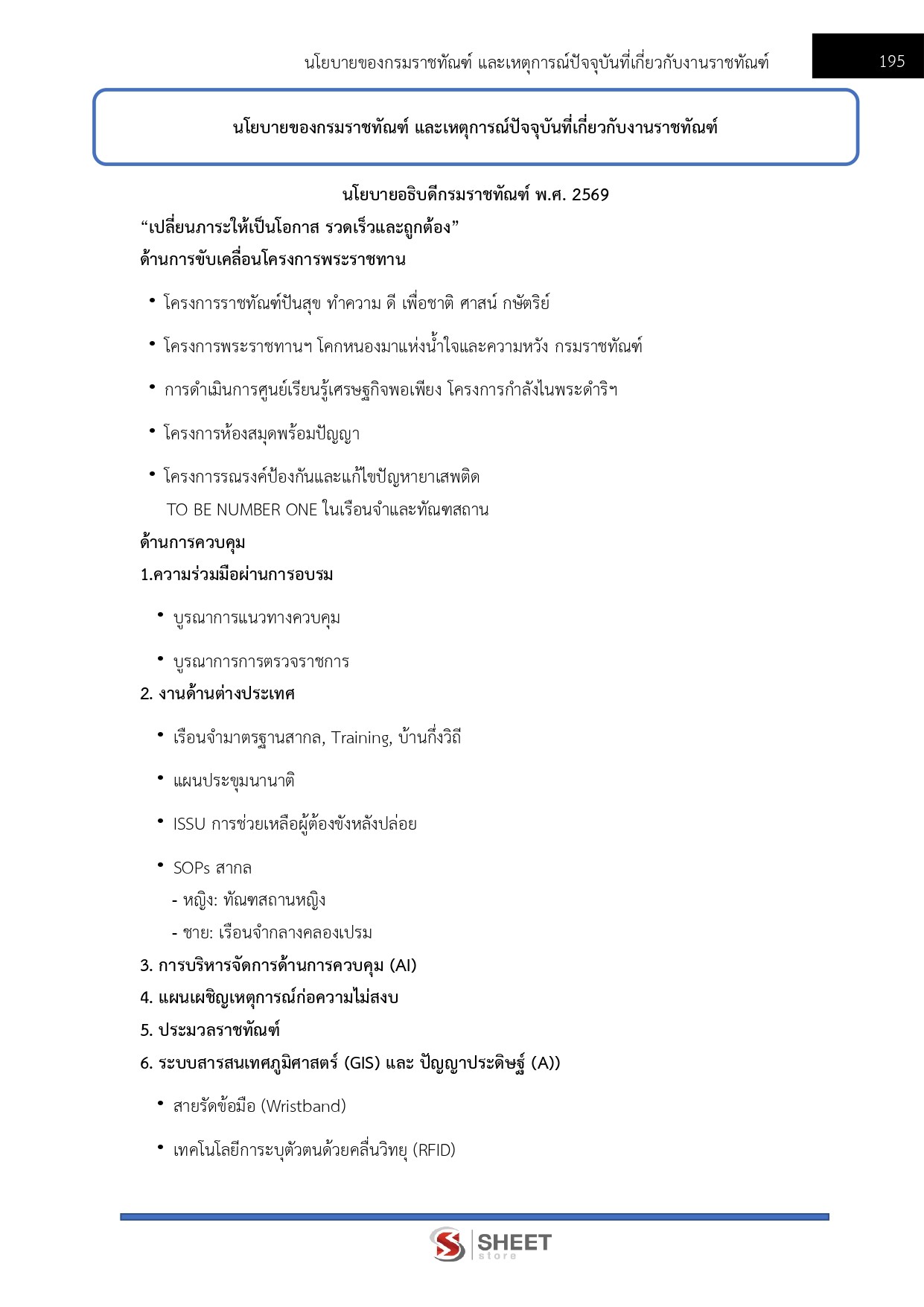 - นโยบายของกรมราชทัณฑ์ และเหตุการณ์ปัจจุบันที่เกี่ยวกับงานราชทัณฑ์