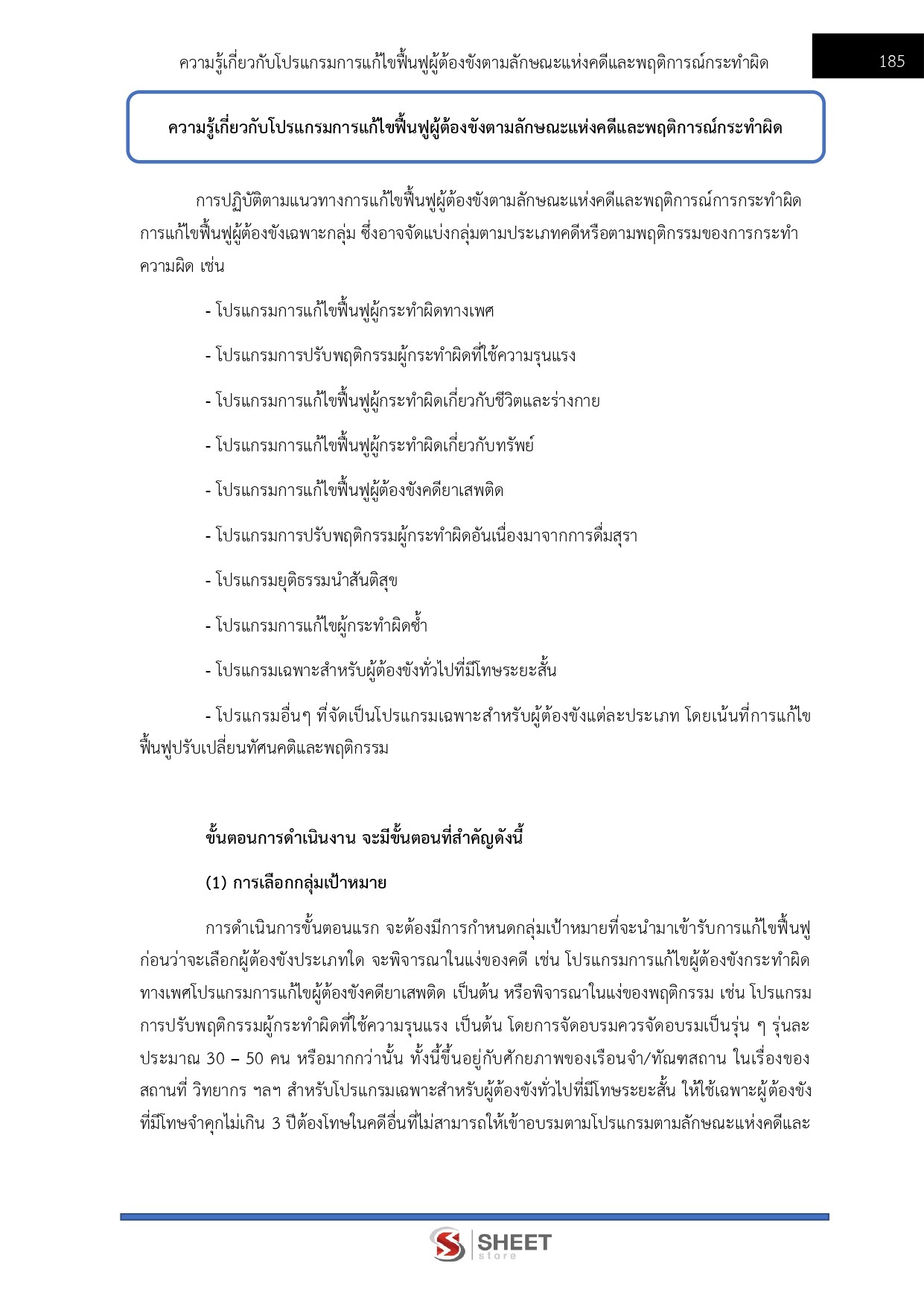 - ความรู้เกี่ยวกับโปรแกรมการแก้ไขฟื้นฟูผู้ต้องชังตามลักษณะแห่งคดีและพฤติการณ์การกระทำผิด