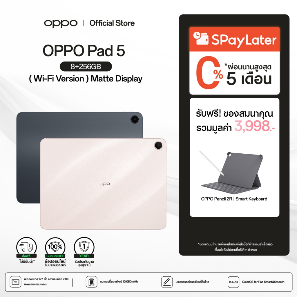 💻⌨️ OPPO Pad 5 จอด้าน Wi-Fi แท็บเล็ตจอใหญ่ 12.1” 2.8K ลื่น 120Hz 🔋⚡