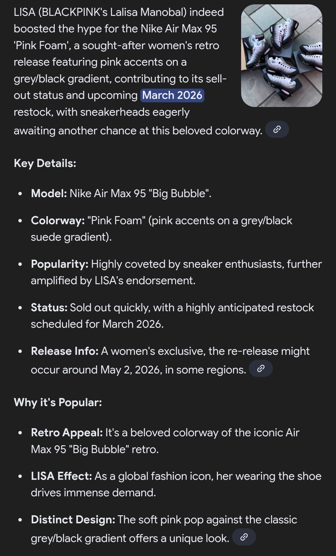 LISA EFFECT นี่คือ Sold Out Queen เบอร์ 1 ของโลกตัวจริง รองเท้า The Air Max 95 'Pink Foam' Sold Out ในเวลาไม่กี่นาทีที่ลิซ่าใส่เปิดตัว